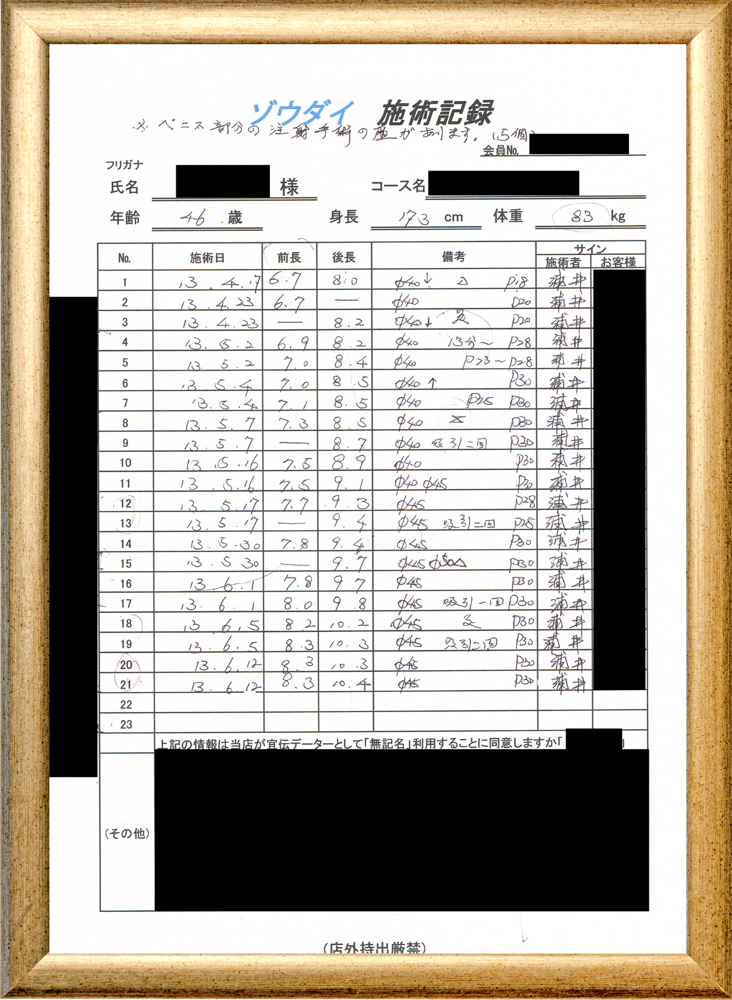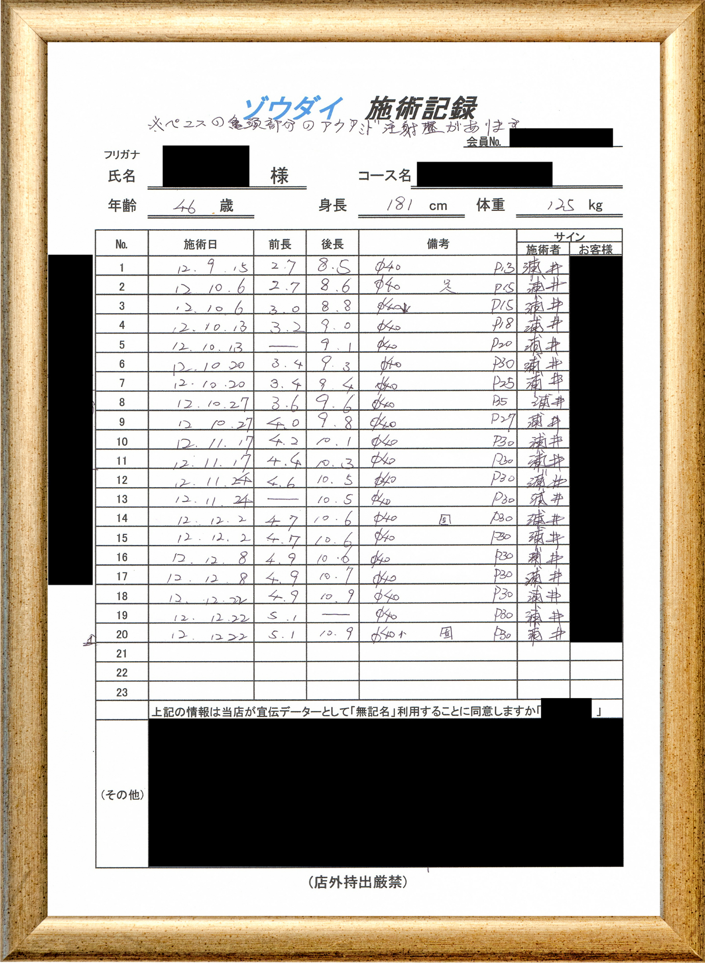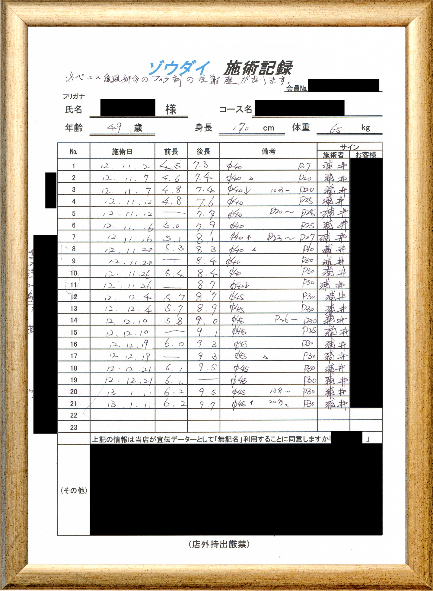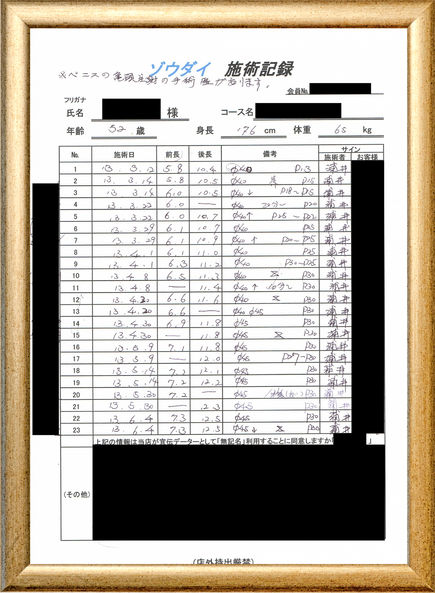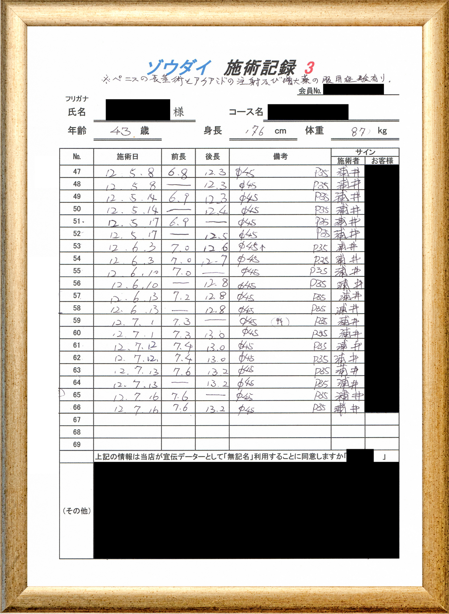 • 他の増大方法で満足されなかった方(増大手術・注射・長茎術・サプリ・増大機具等)が、当院で満足された一部のみの実例です。