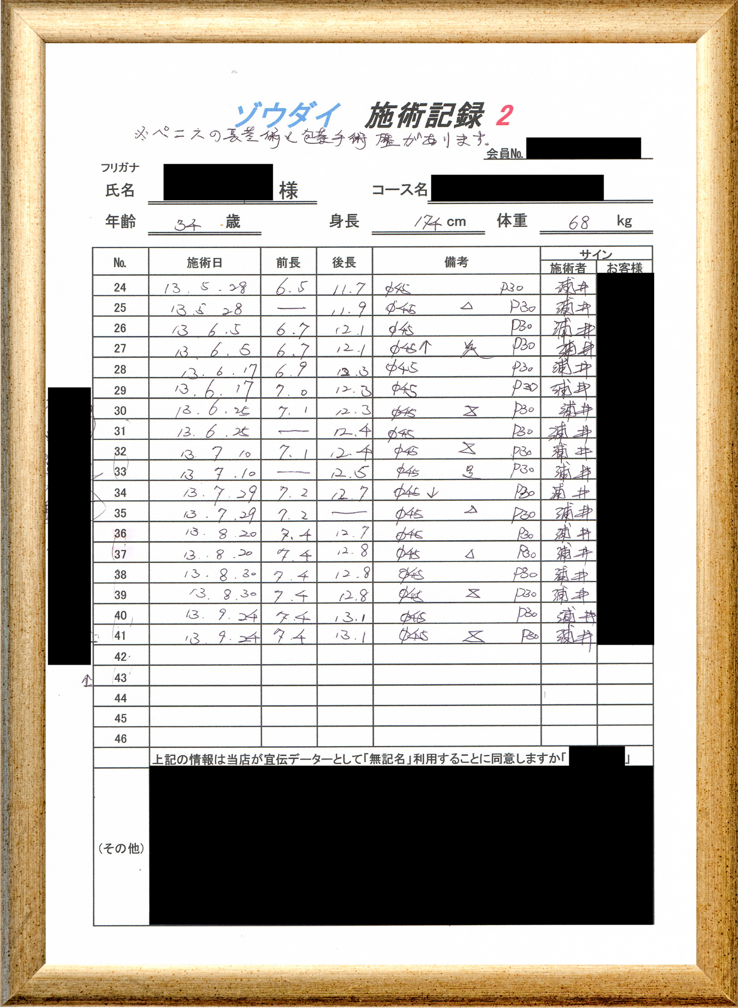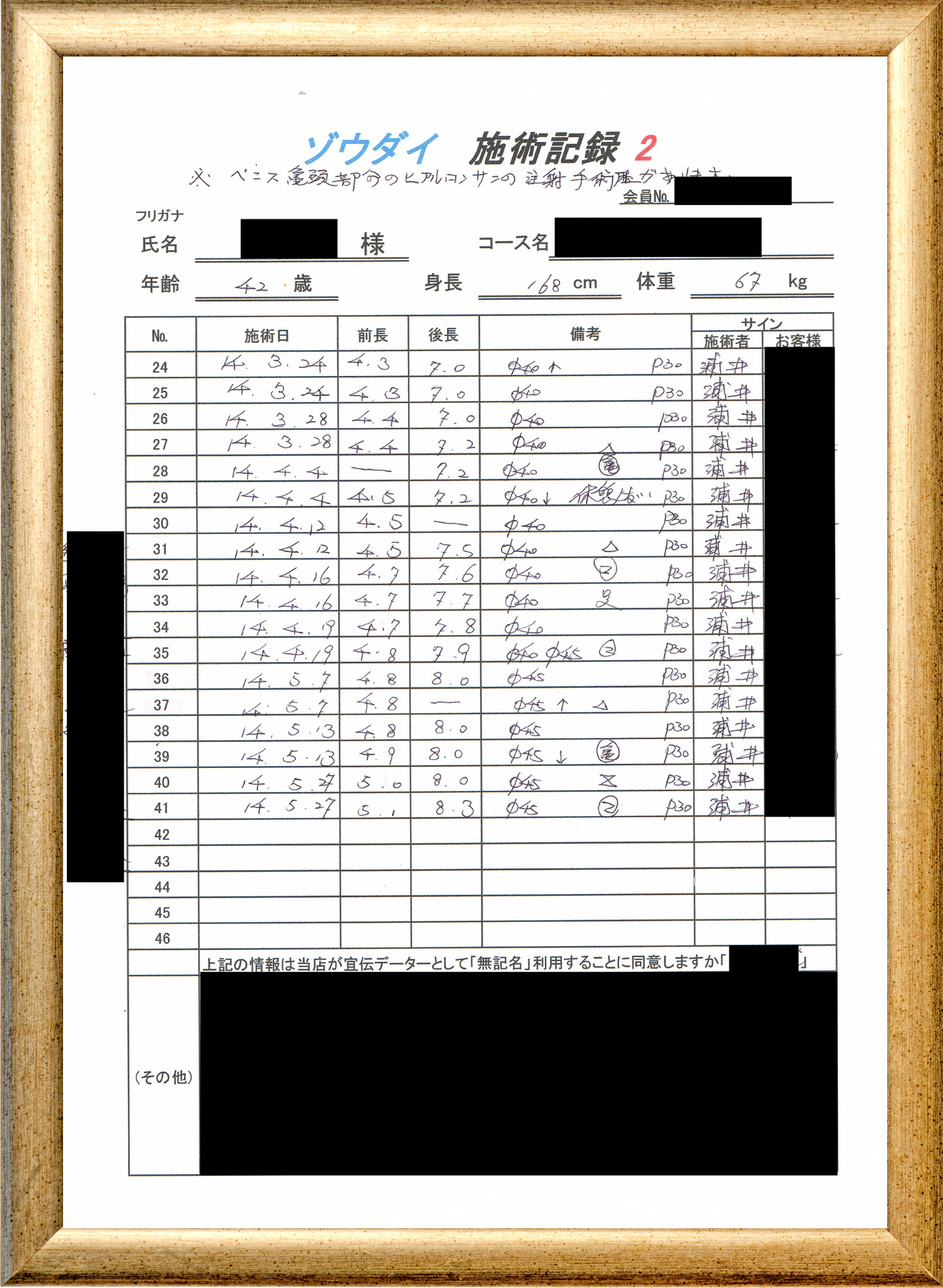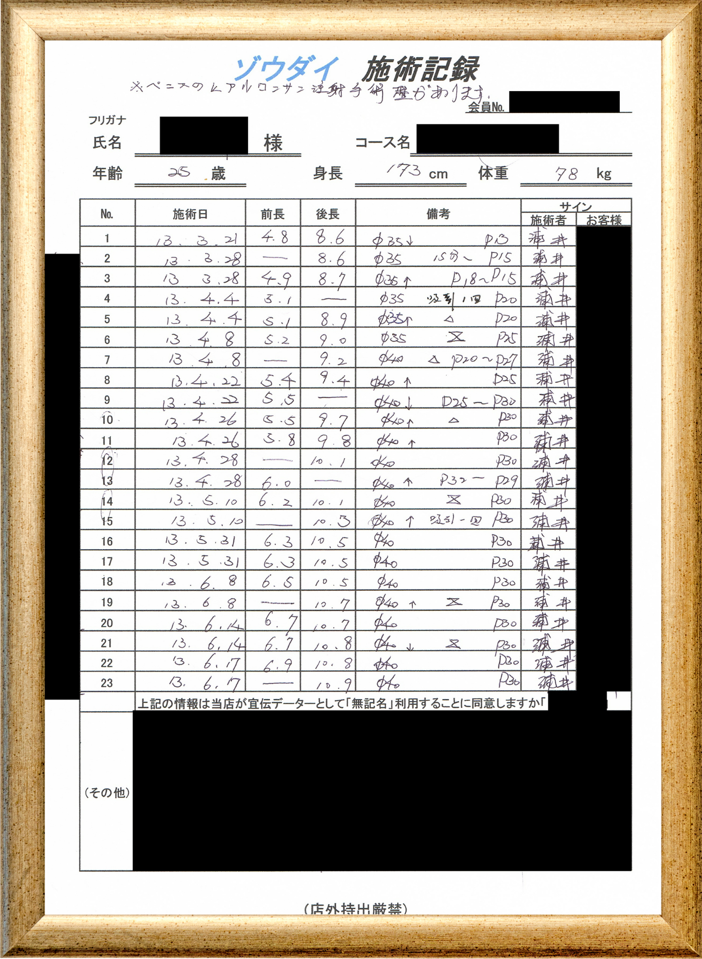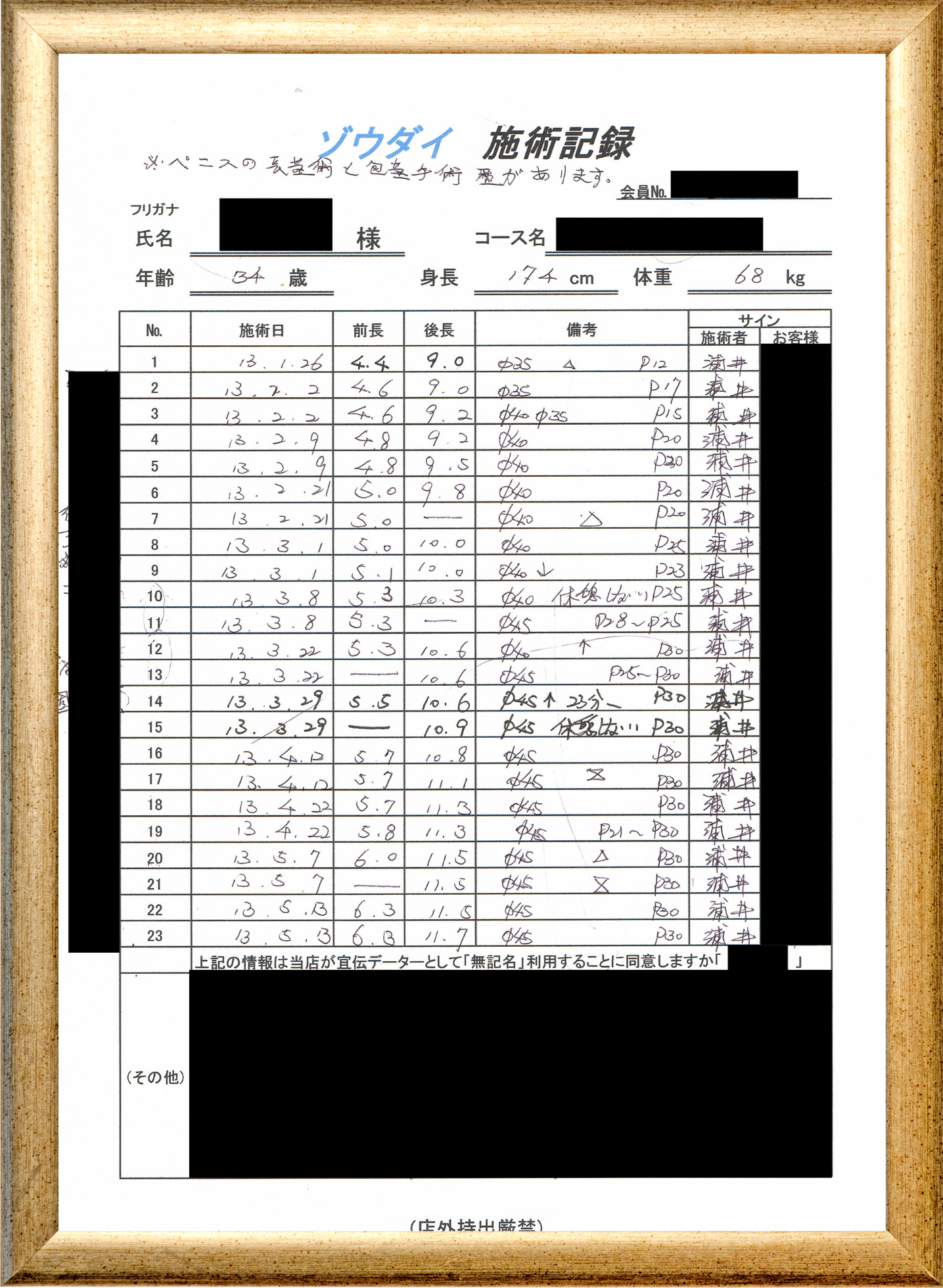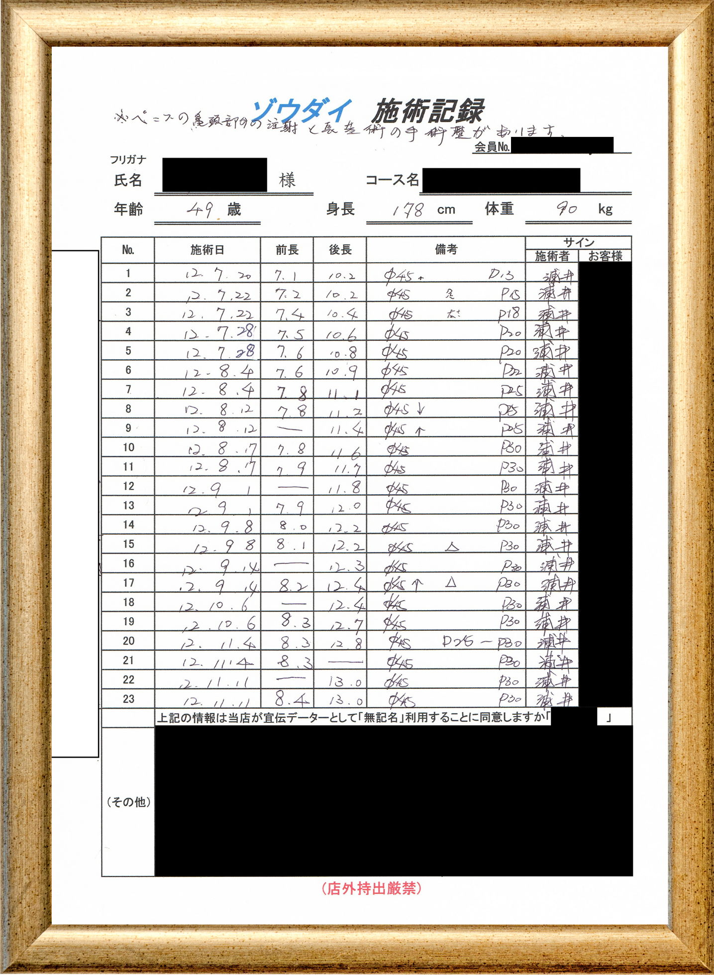 • 他の増大方法で満足されなかった方(増大手術・注射・長茎術・サプリ・増大機具等)が、当院で満足された一部のみの実例です。