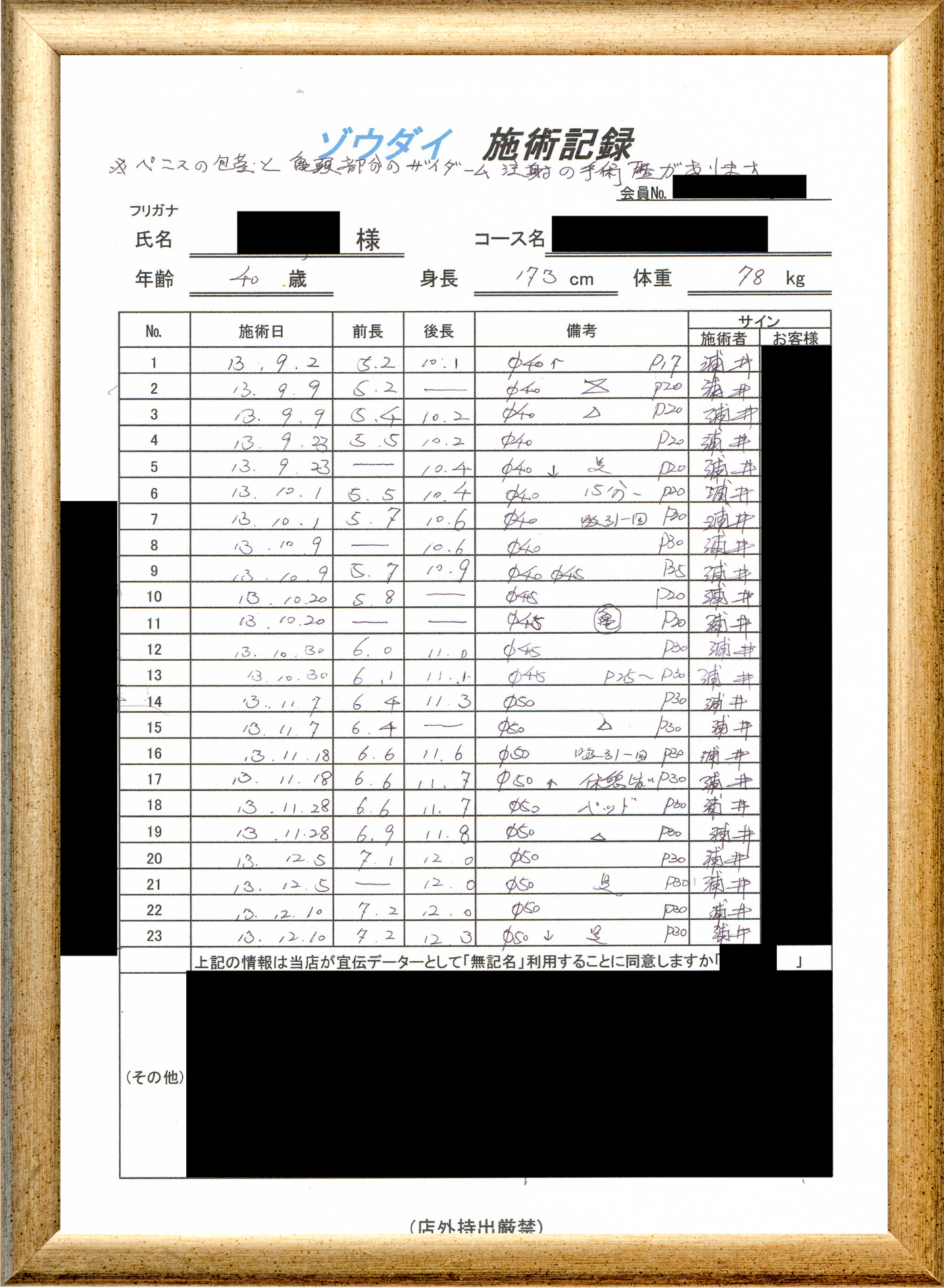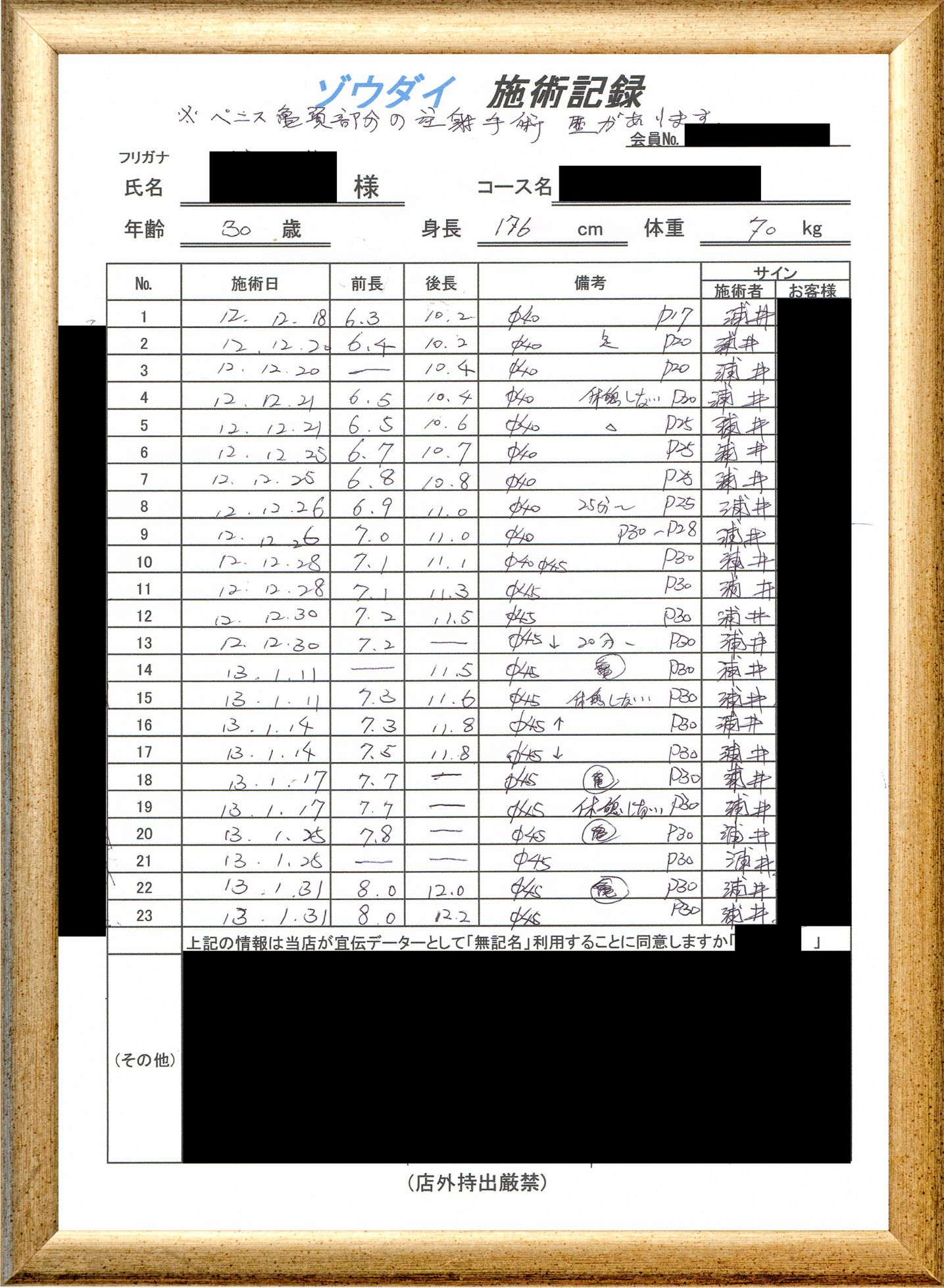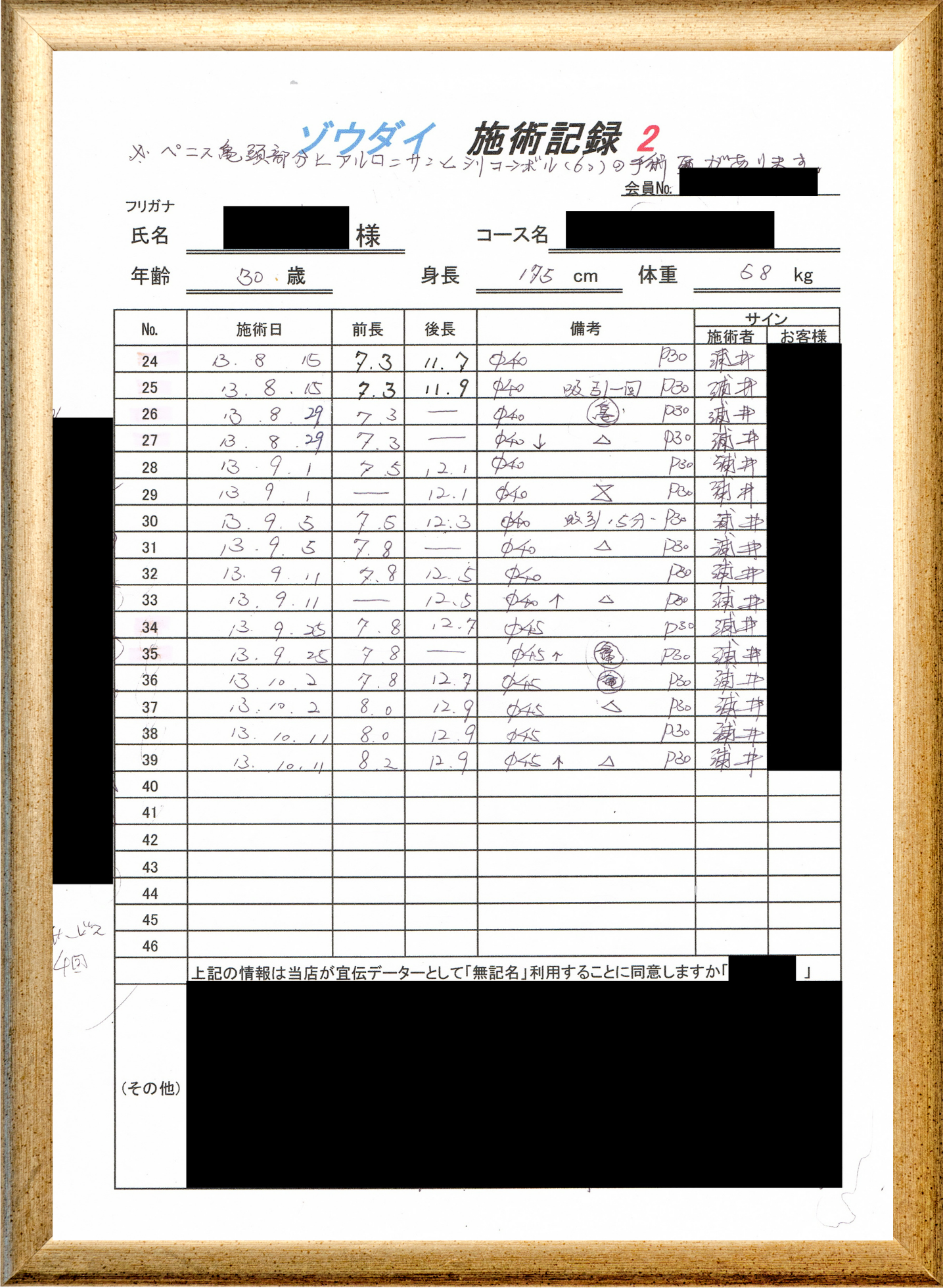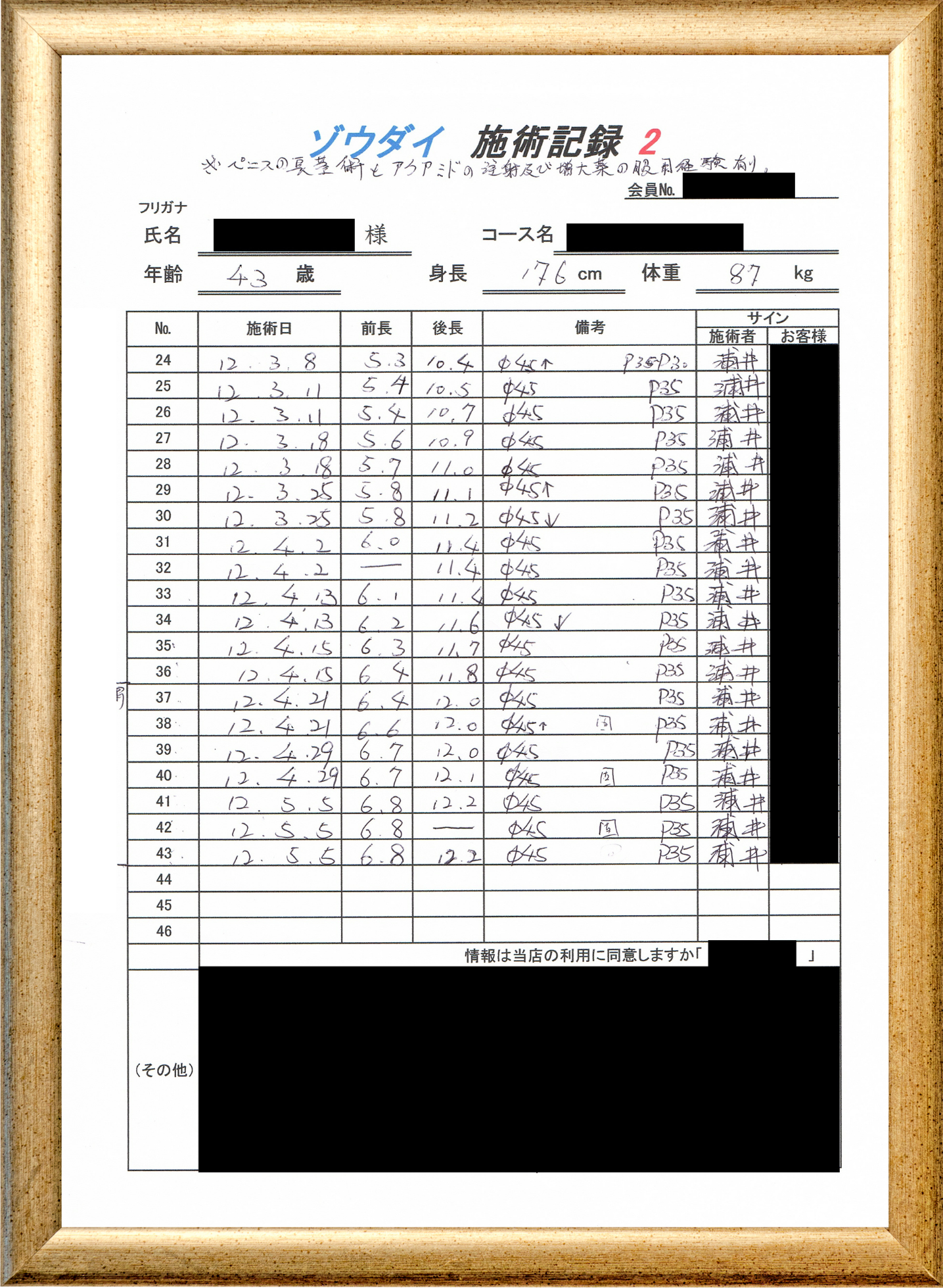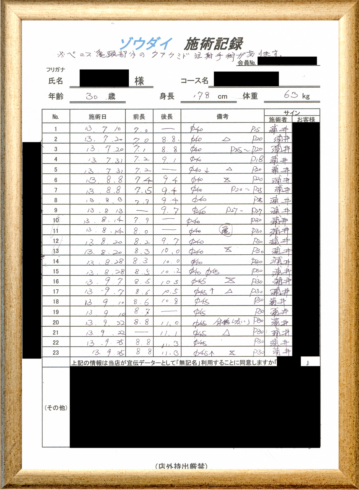 • 他の増大方法で満足されなかった方(増大手術・注射・長茎術・サプリ・増大機具等)が、当院で満足された一部のみの実例です。