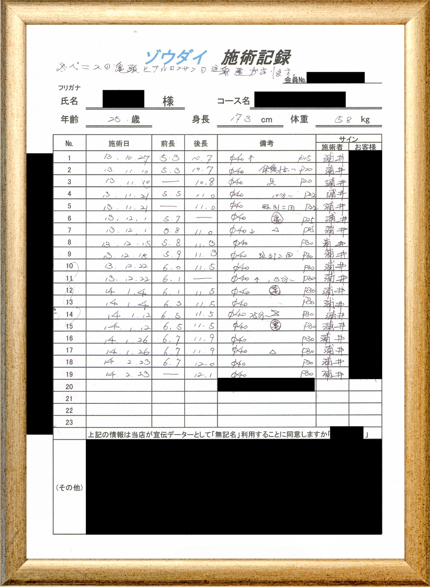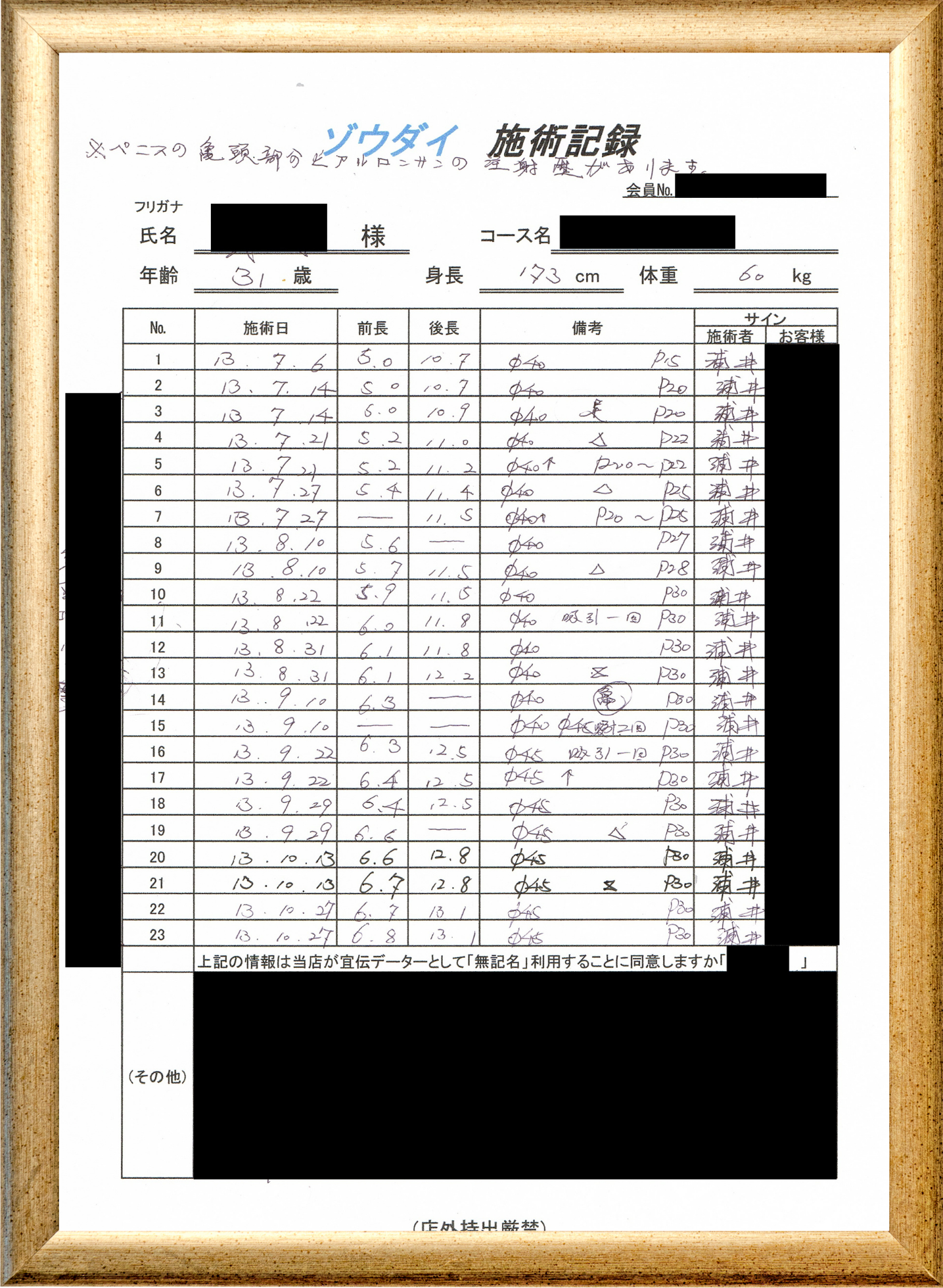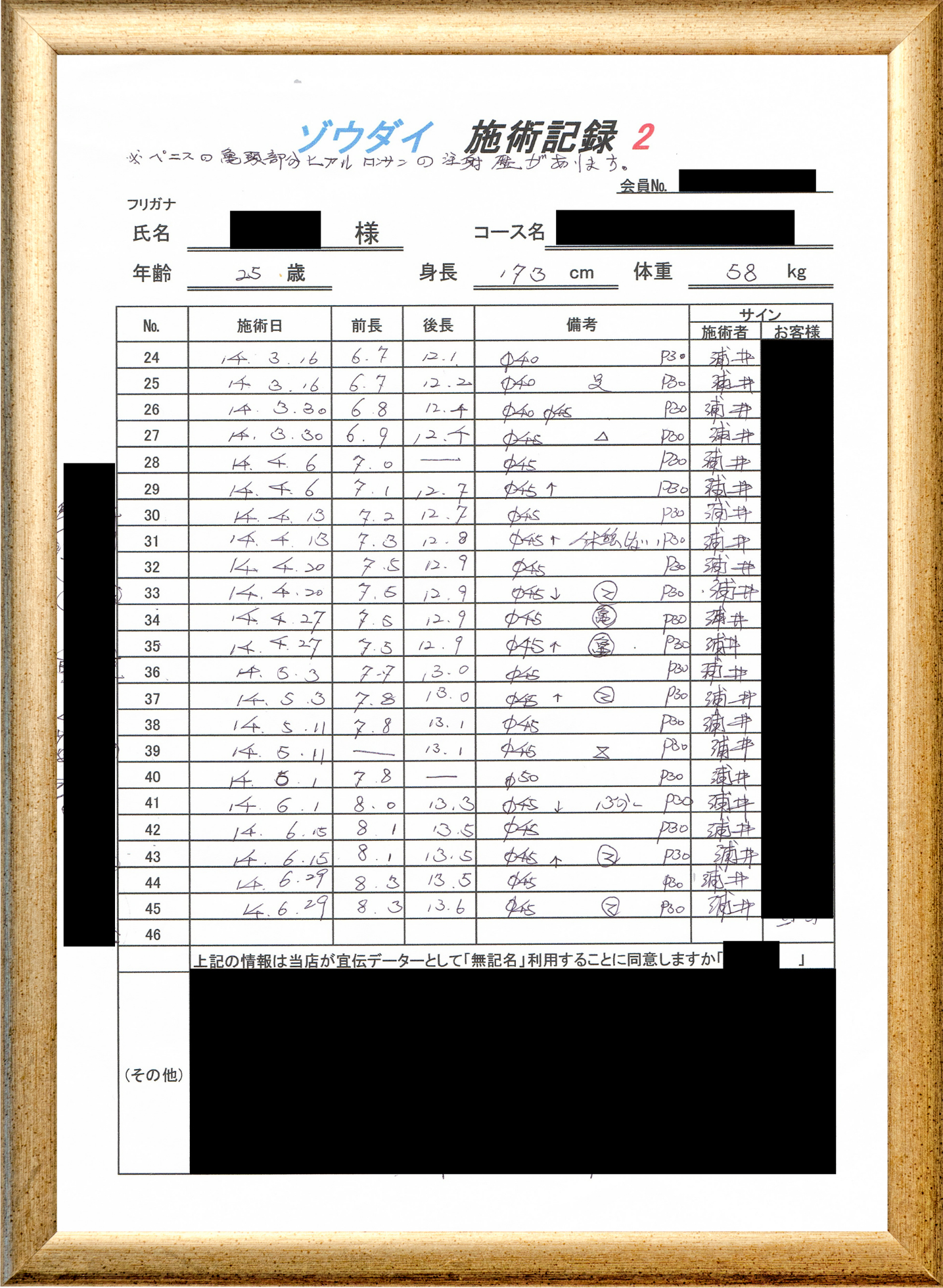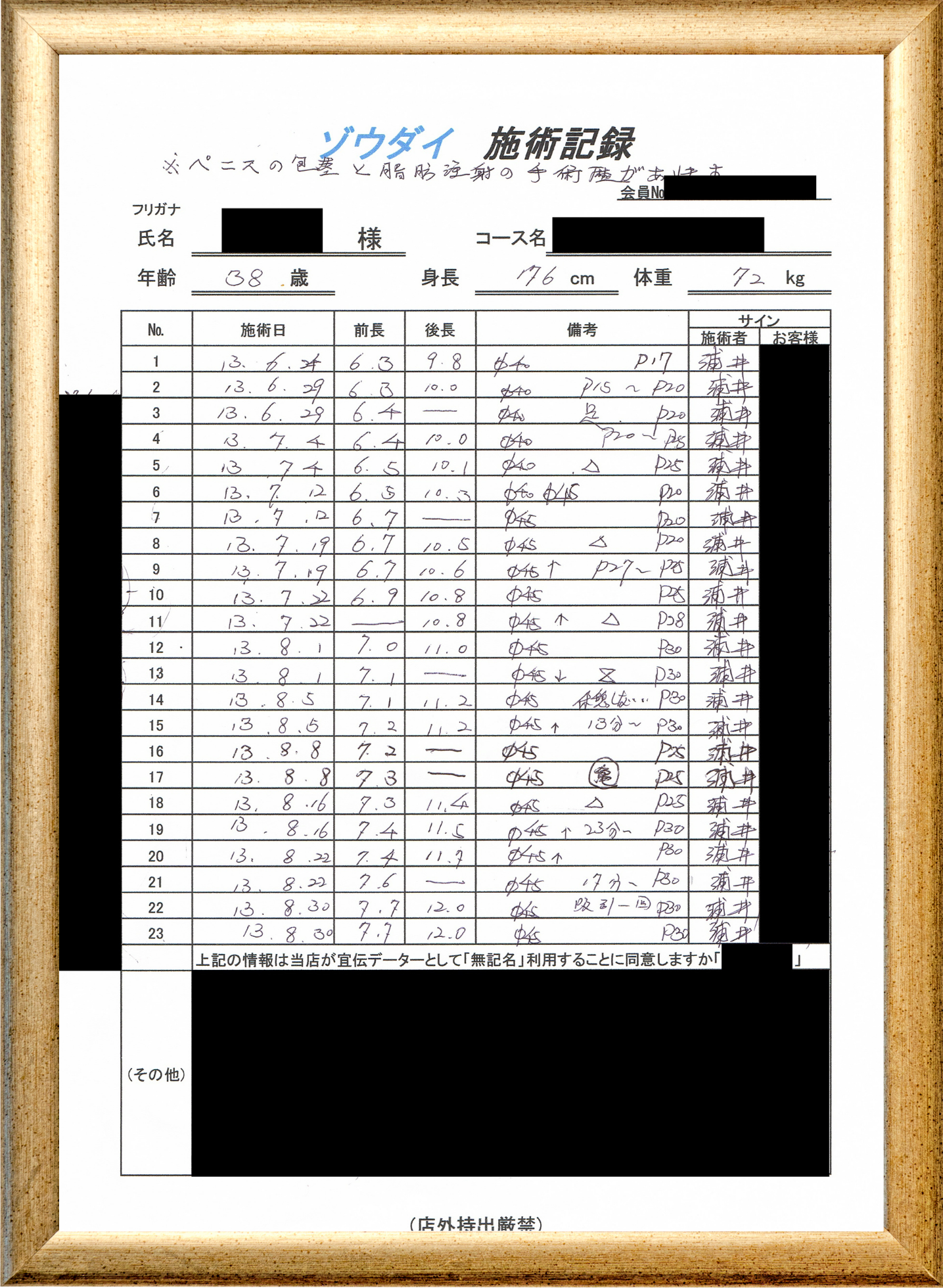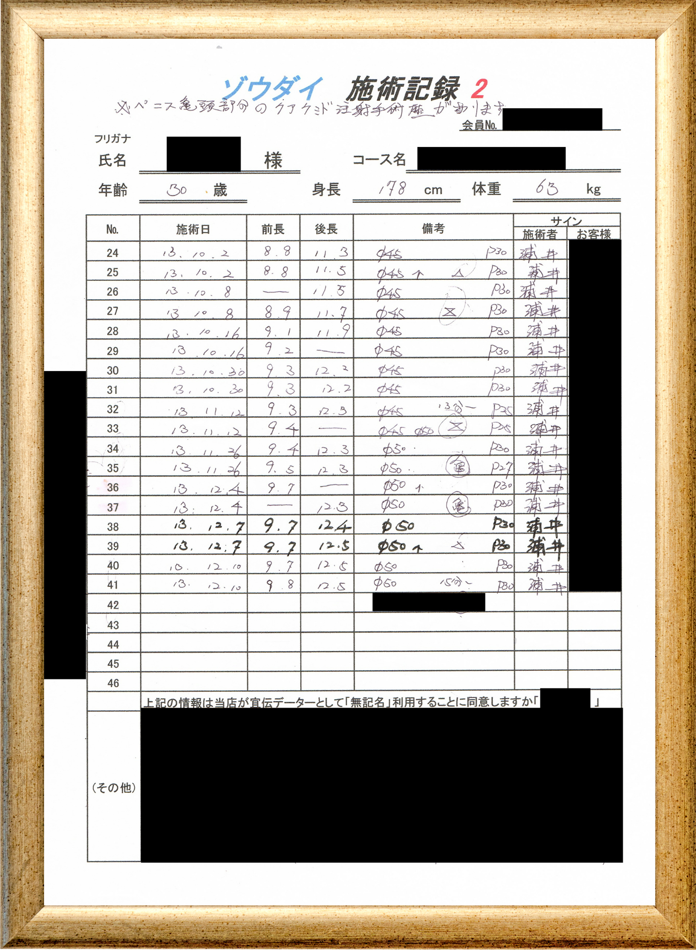 • 他の増大方法で満足されなかった方(増大手術・注射・長茎術・サプリ・増大機具等)が、当院で満足された一部のみの実例です。