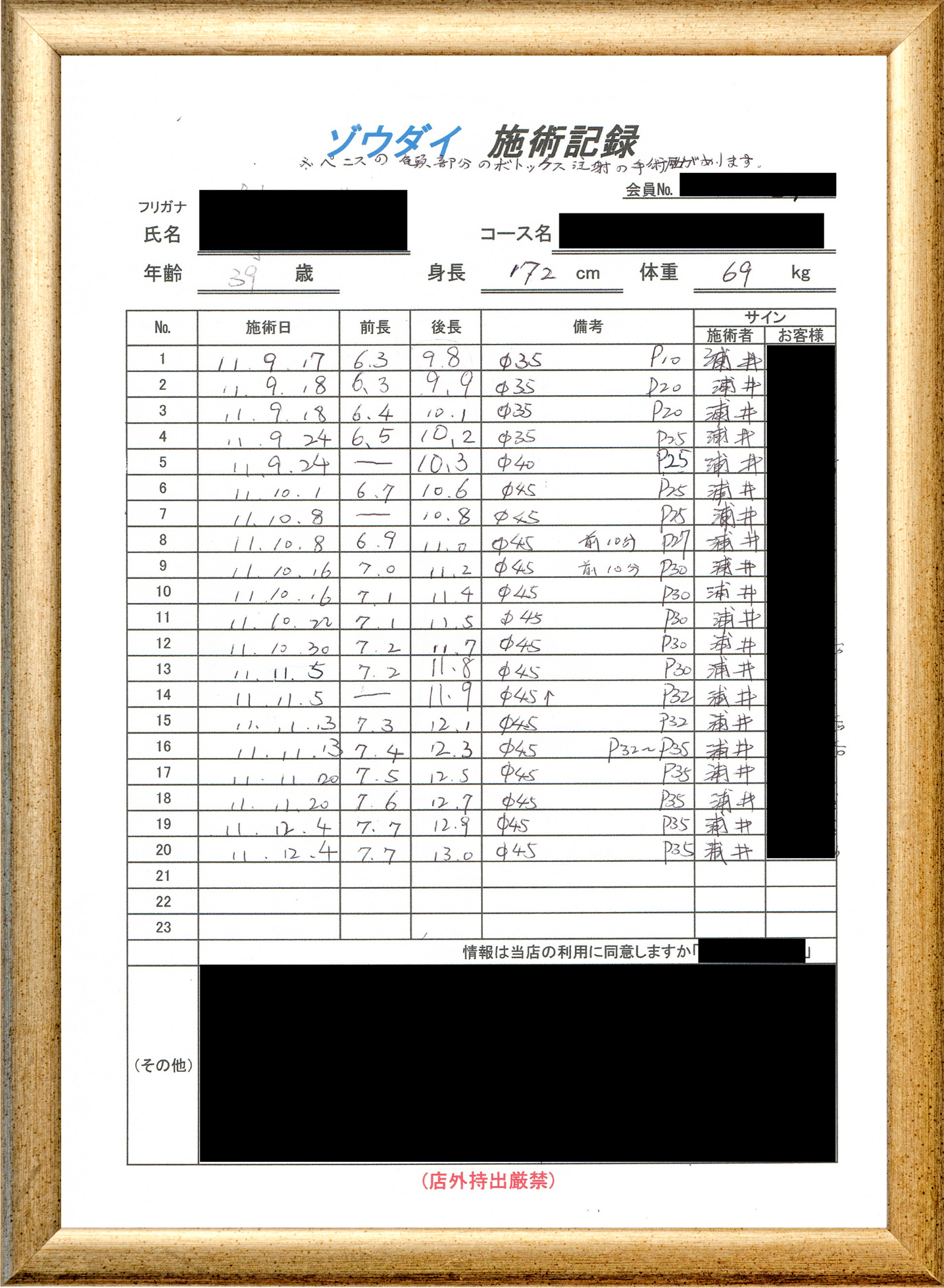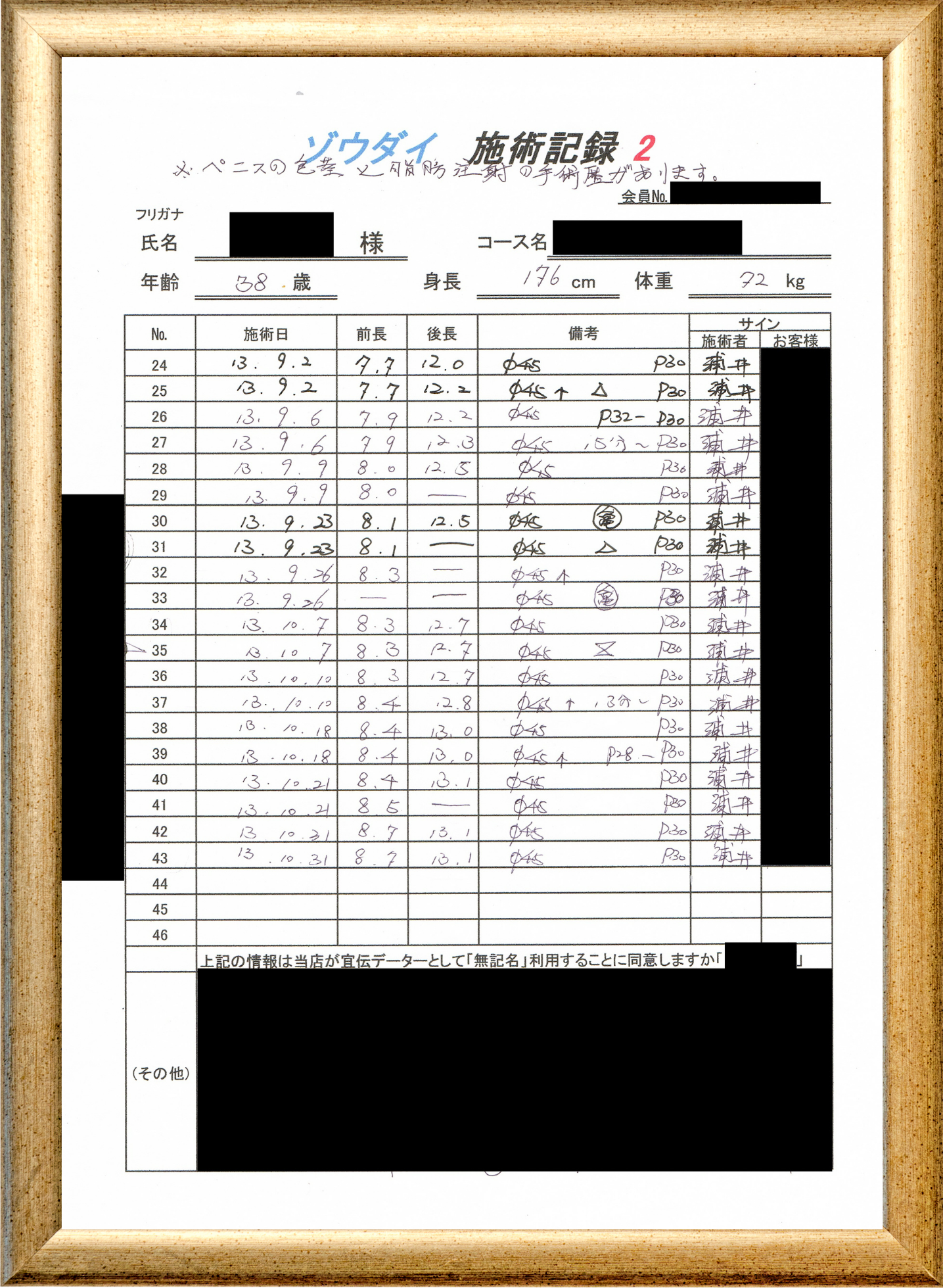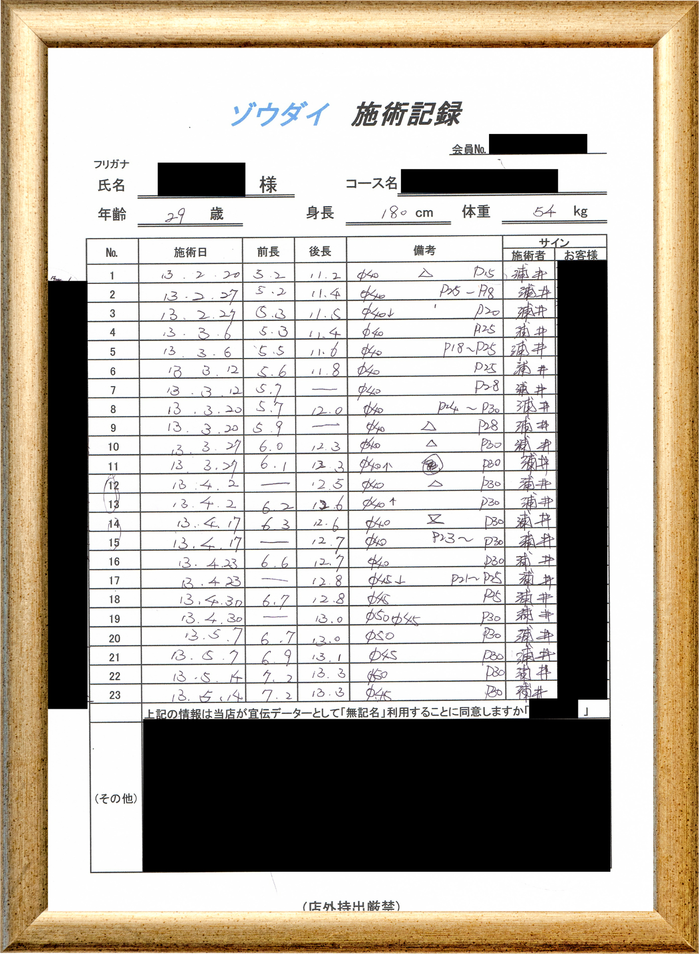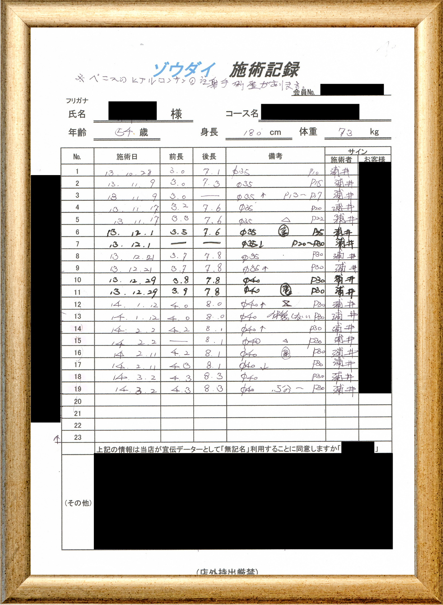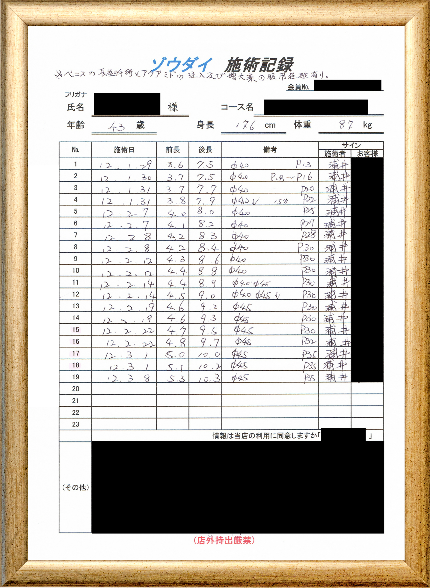 • 他の増大方法で満足されなかった方(増大手術・注射・長茎術・サプリ・増大機具等)が、当院で満足された一部のみの実例です。