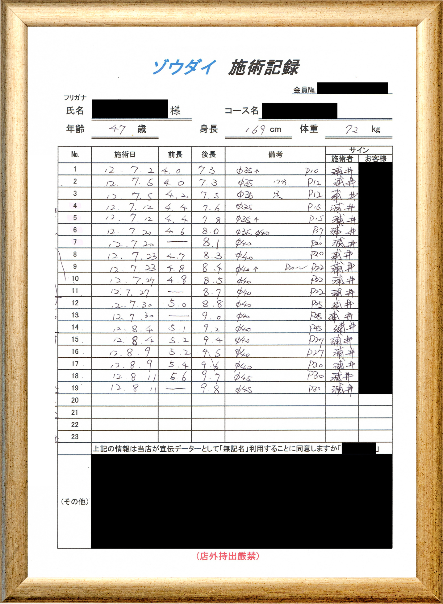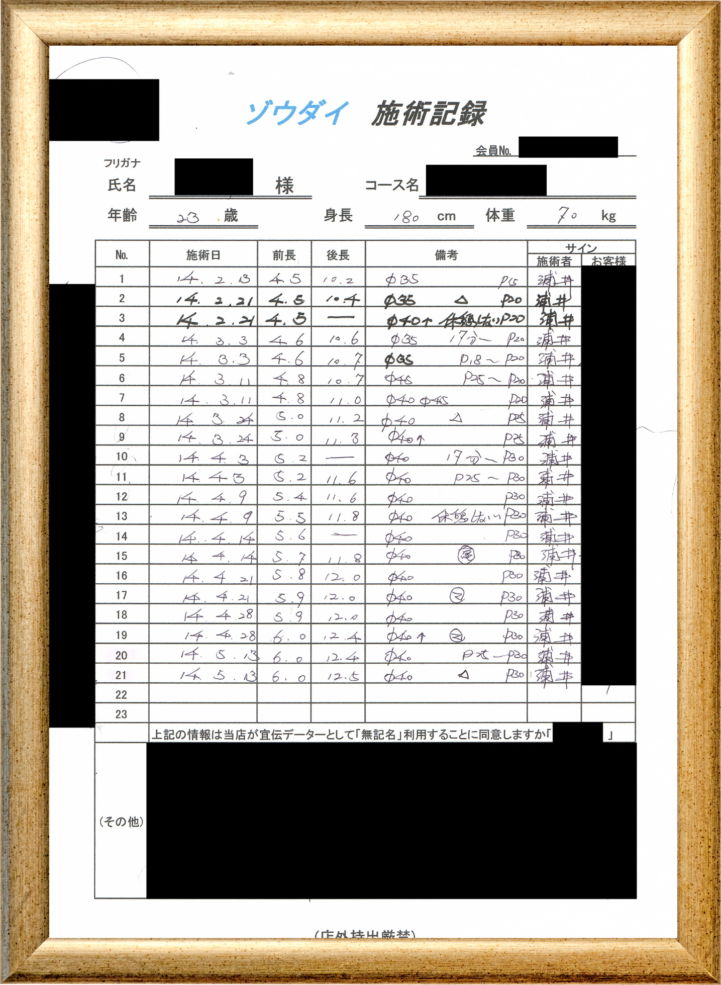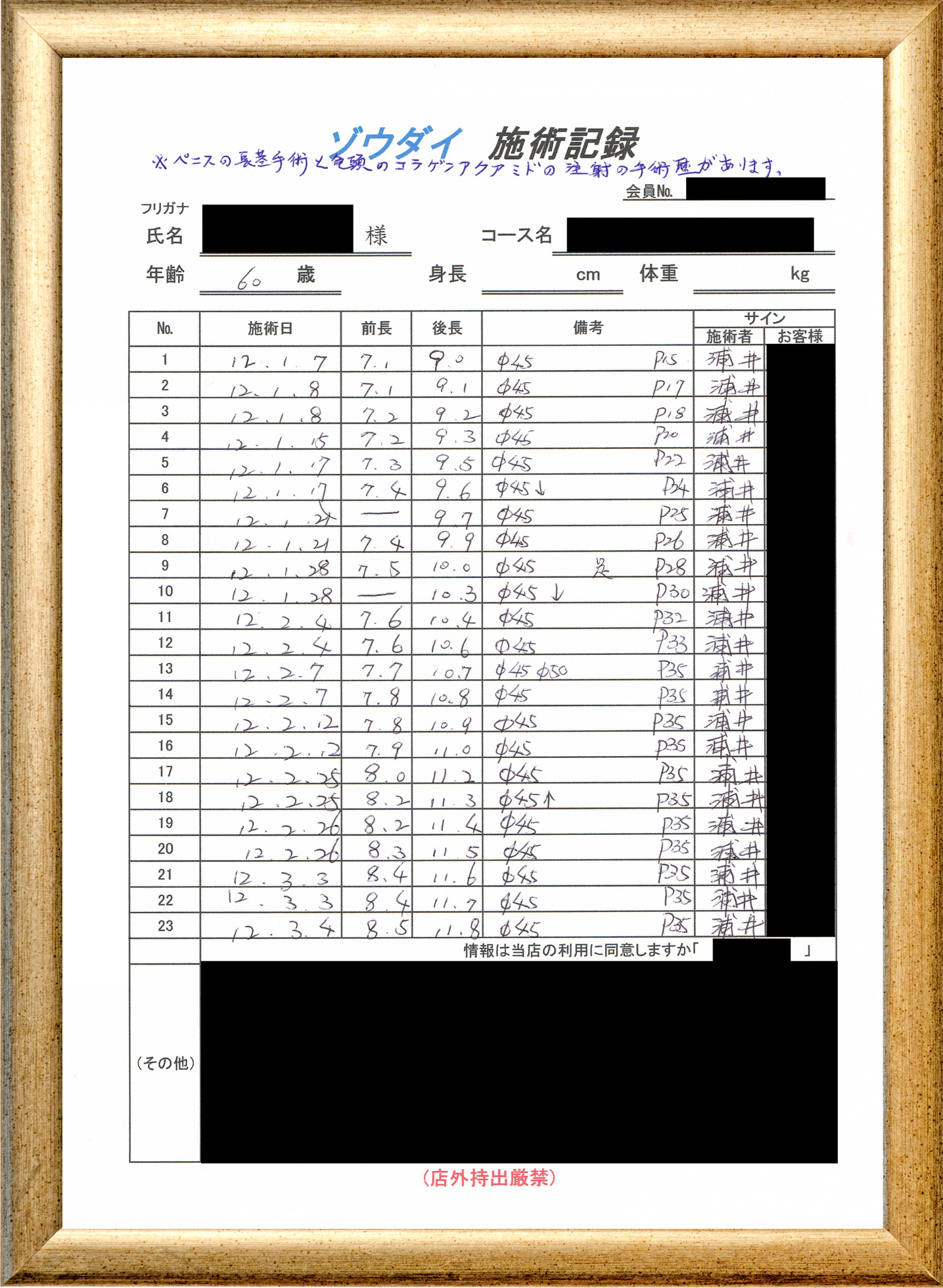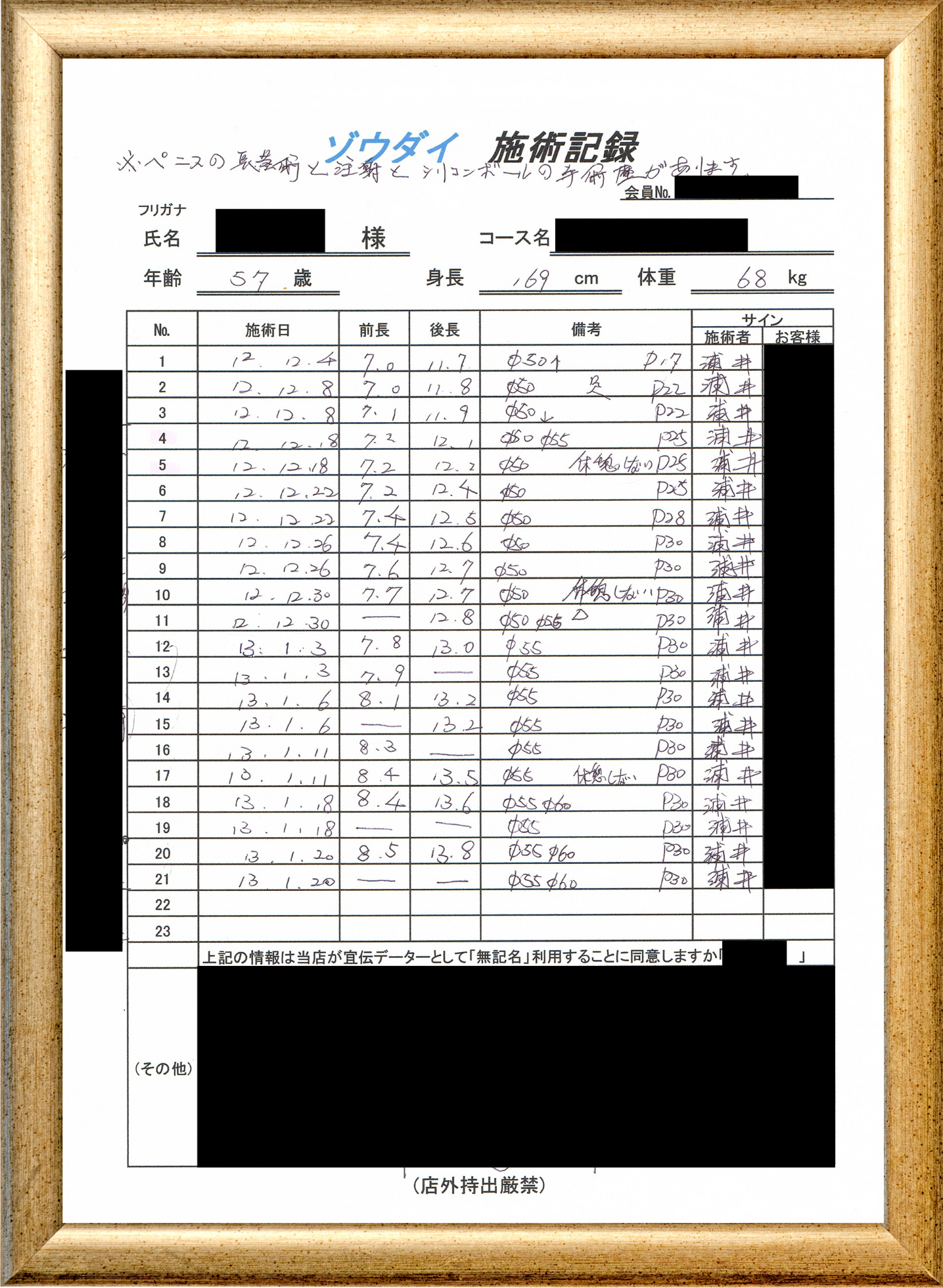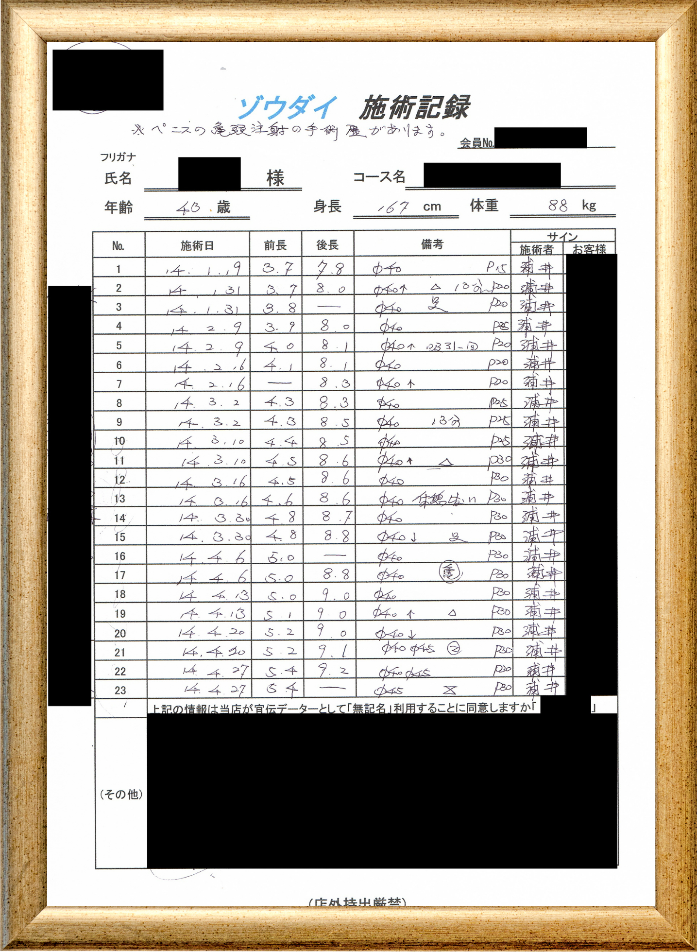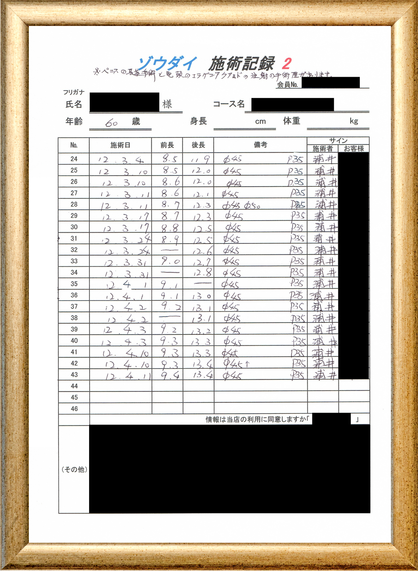• 他の増大方法で満足されなかった方(増大手術・注射・長茎術・サプリ・増大機具等)が、当院で満足された一部のみの実例です。