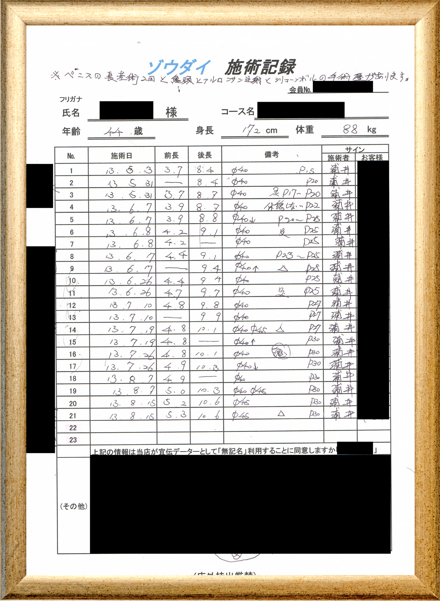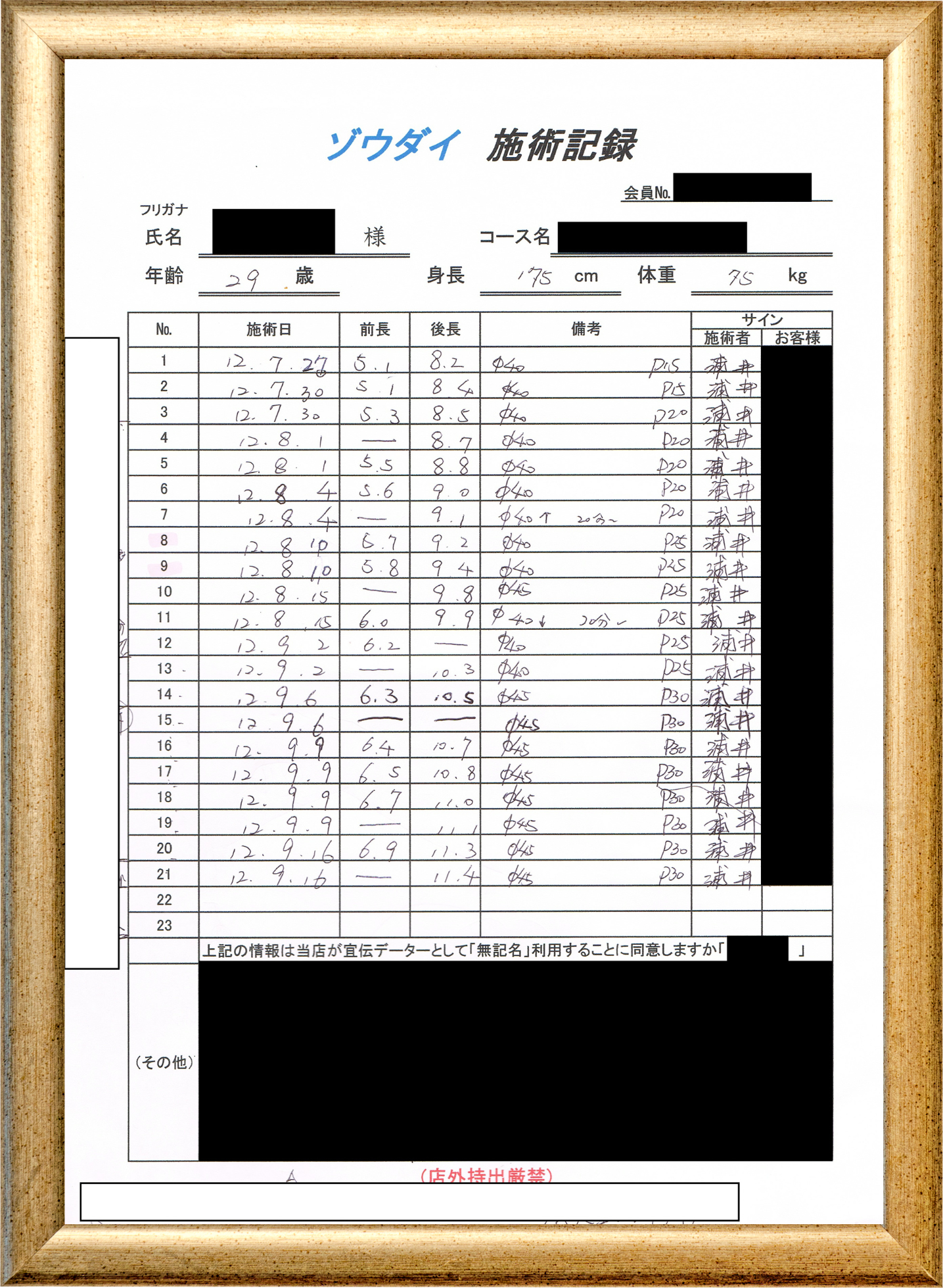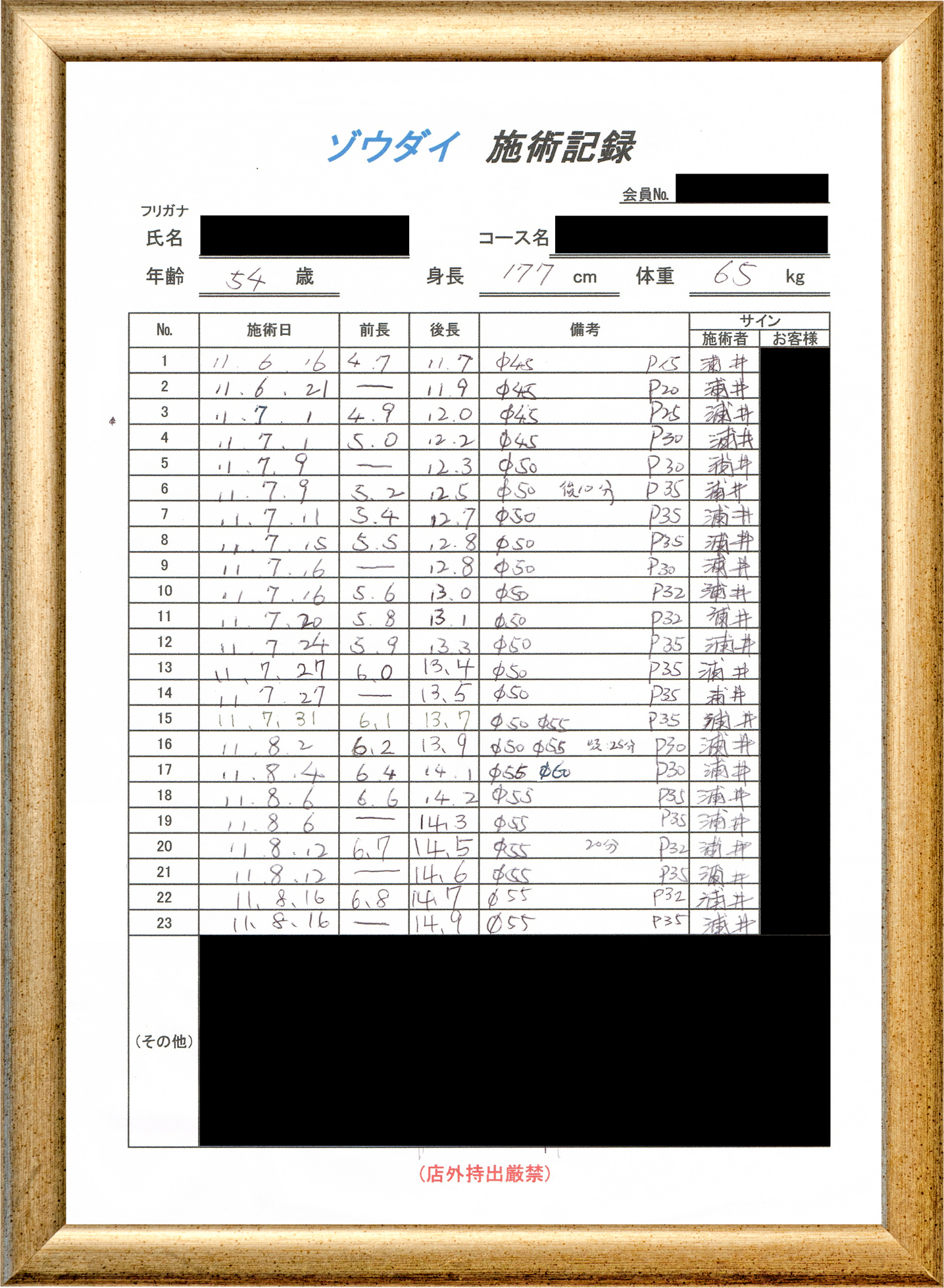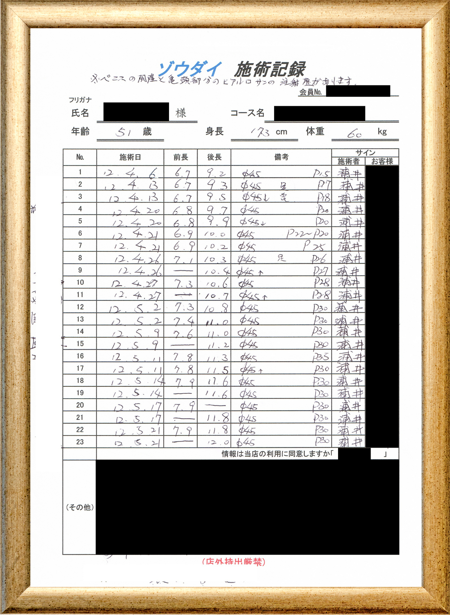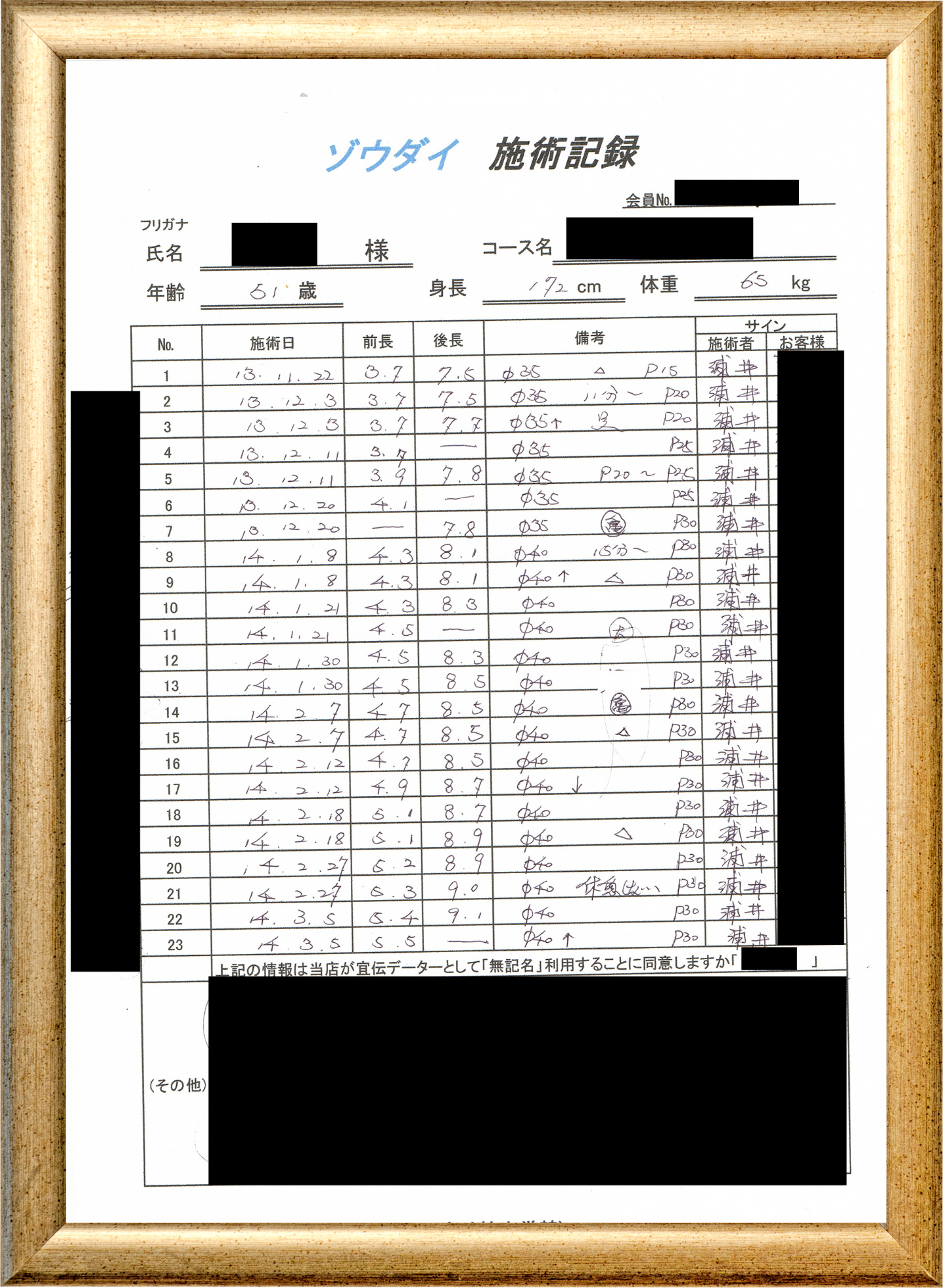 • 他の増大方法で満足されなかった方(増大手術・注射・長茎術・サプリ・増大機具等)が、当院で満足された一部のみの実例です。