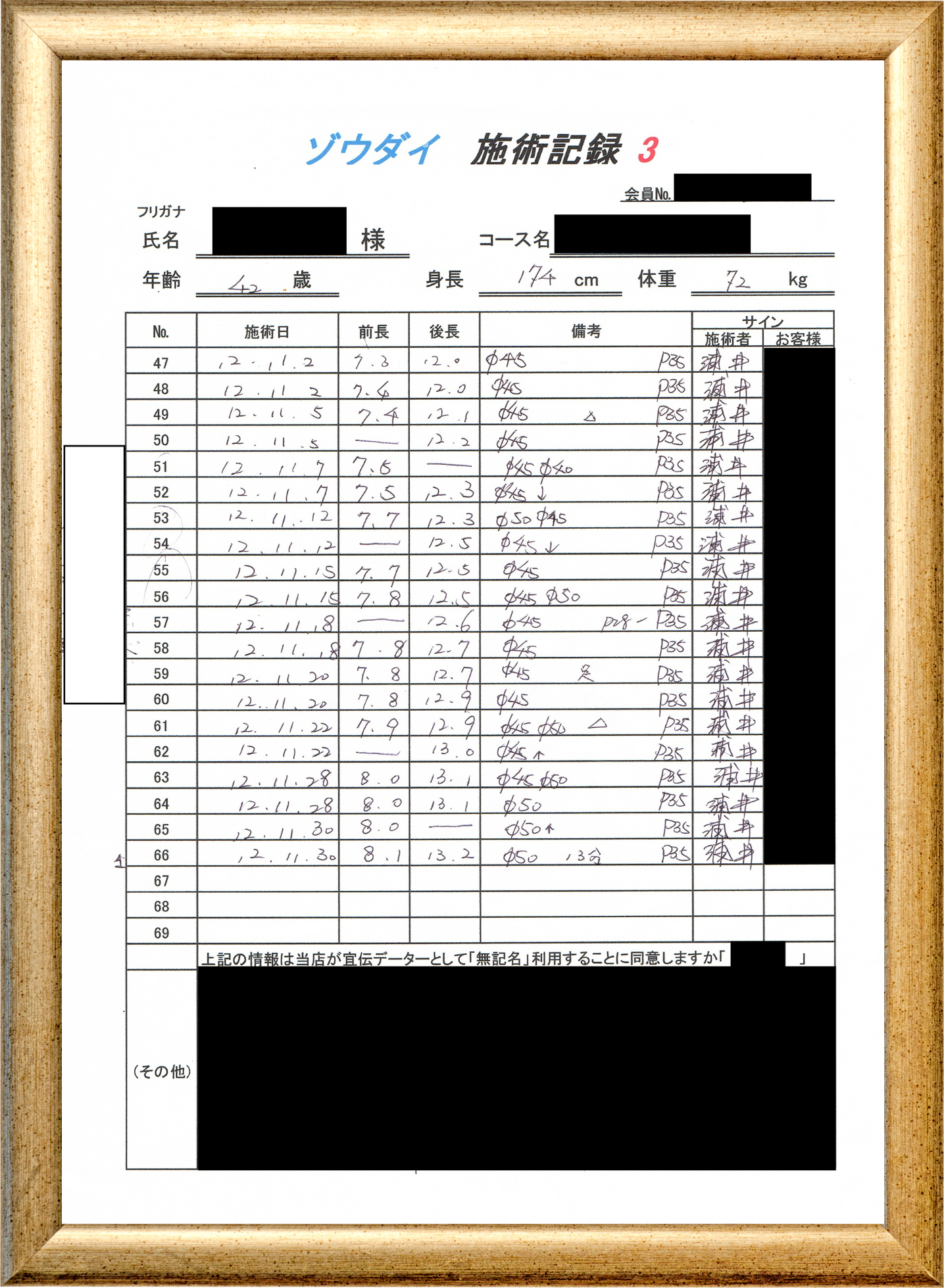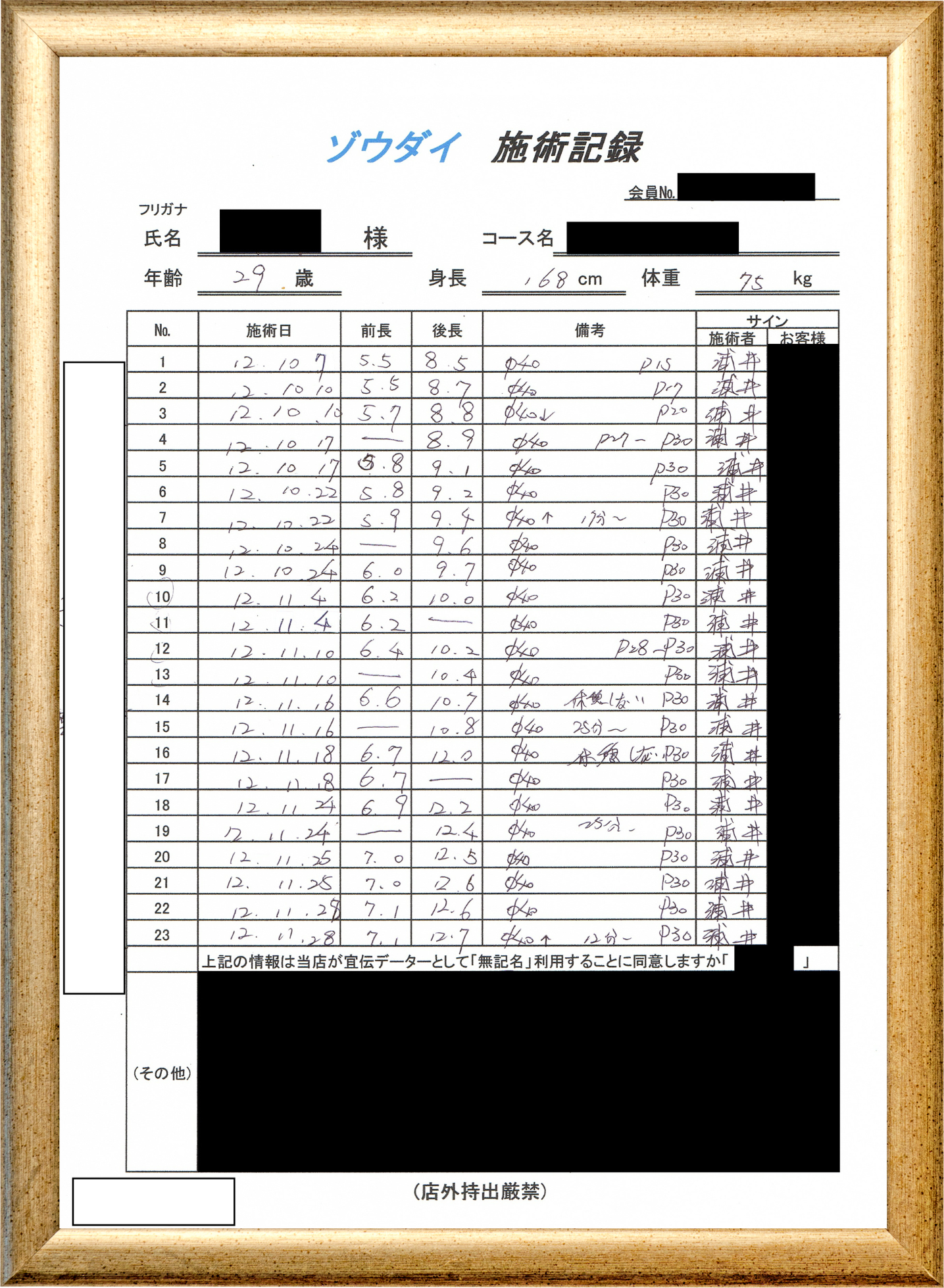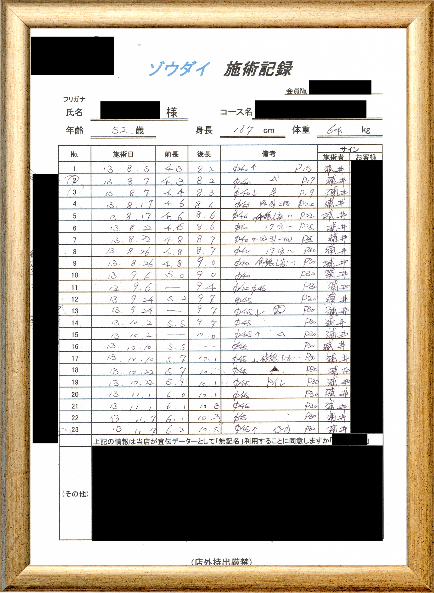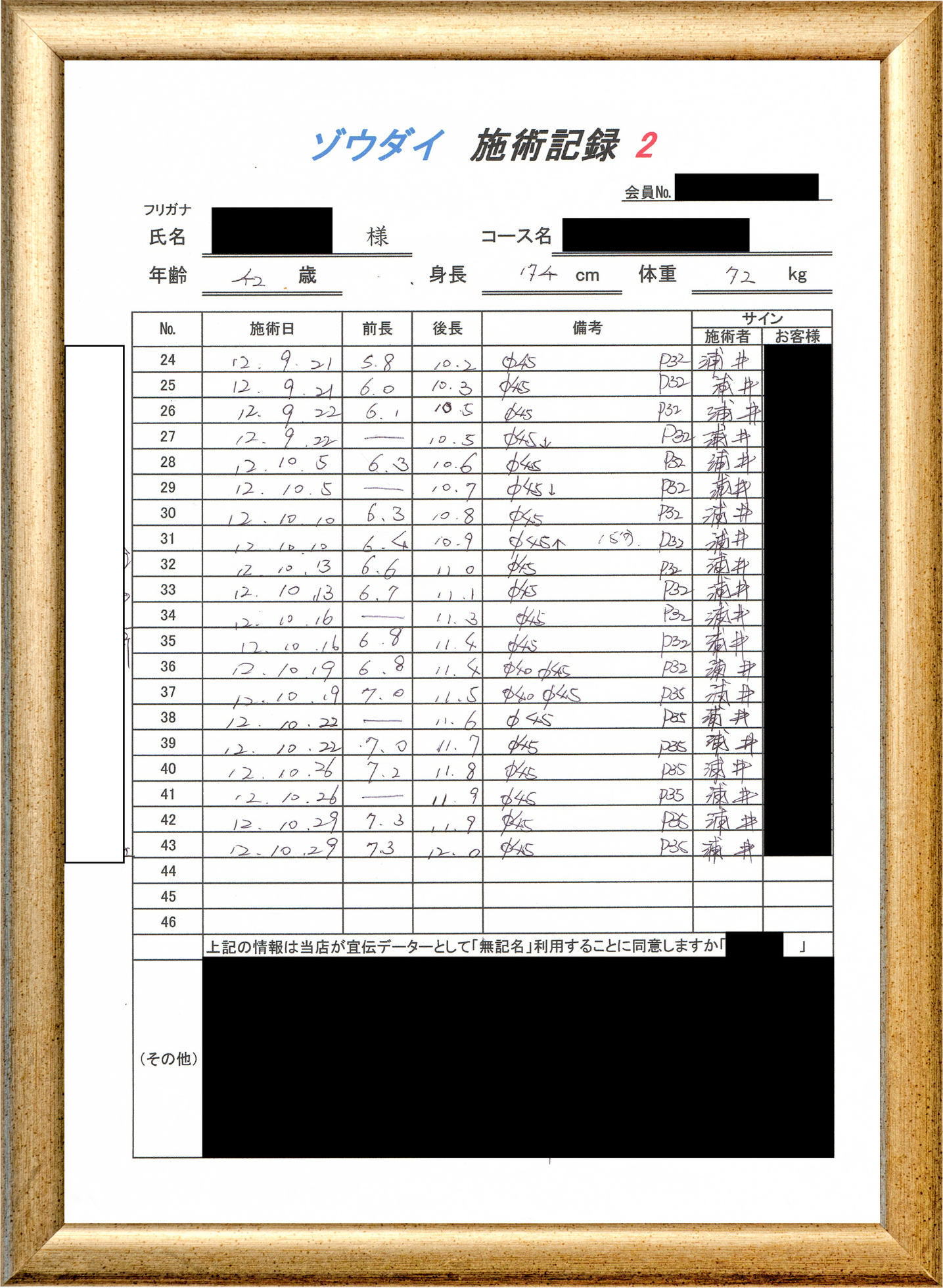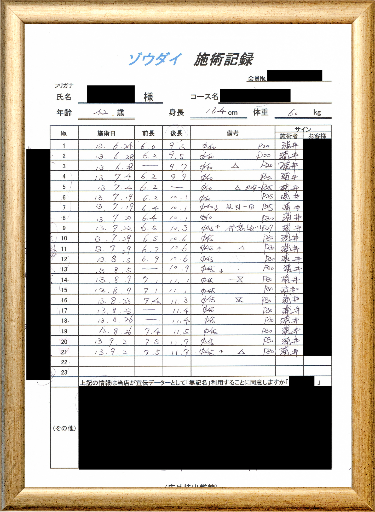 • 他の増大方法で満足されなかった方(増大手術・注射・長茎術・サプリ・増大機具等)が、当院で満足された一部のみの実例です。