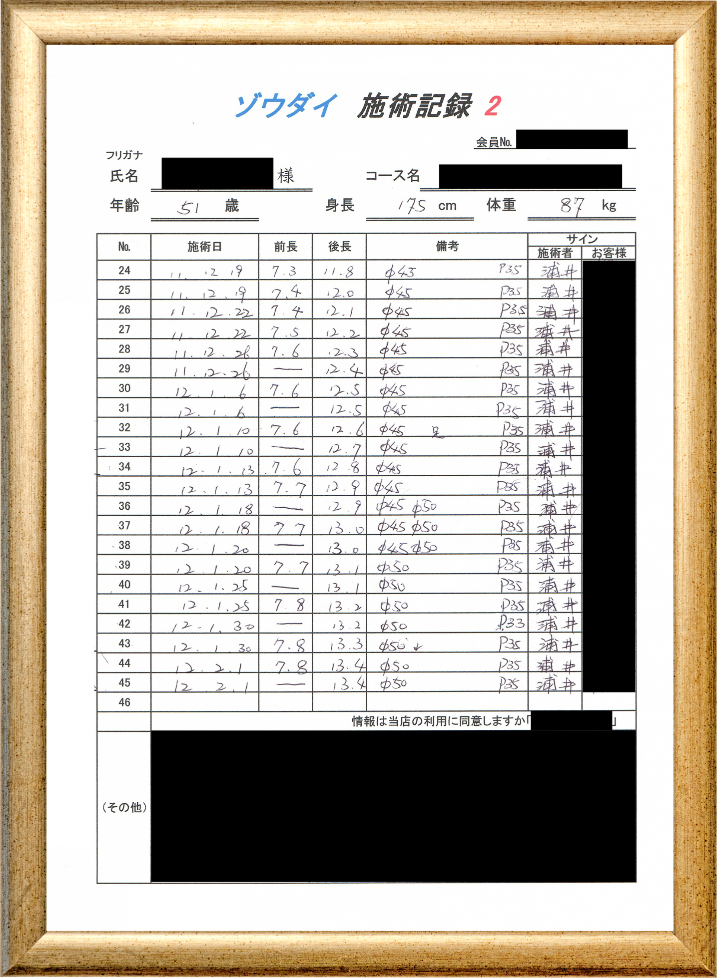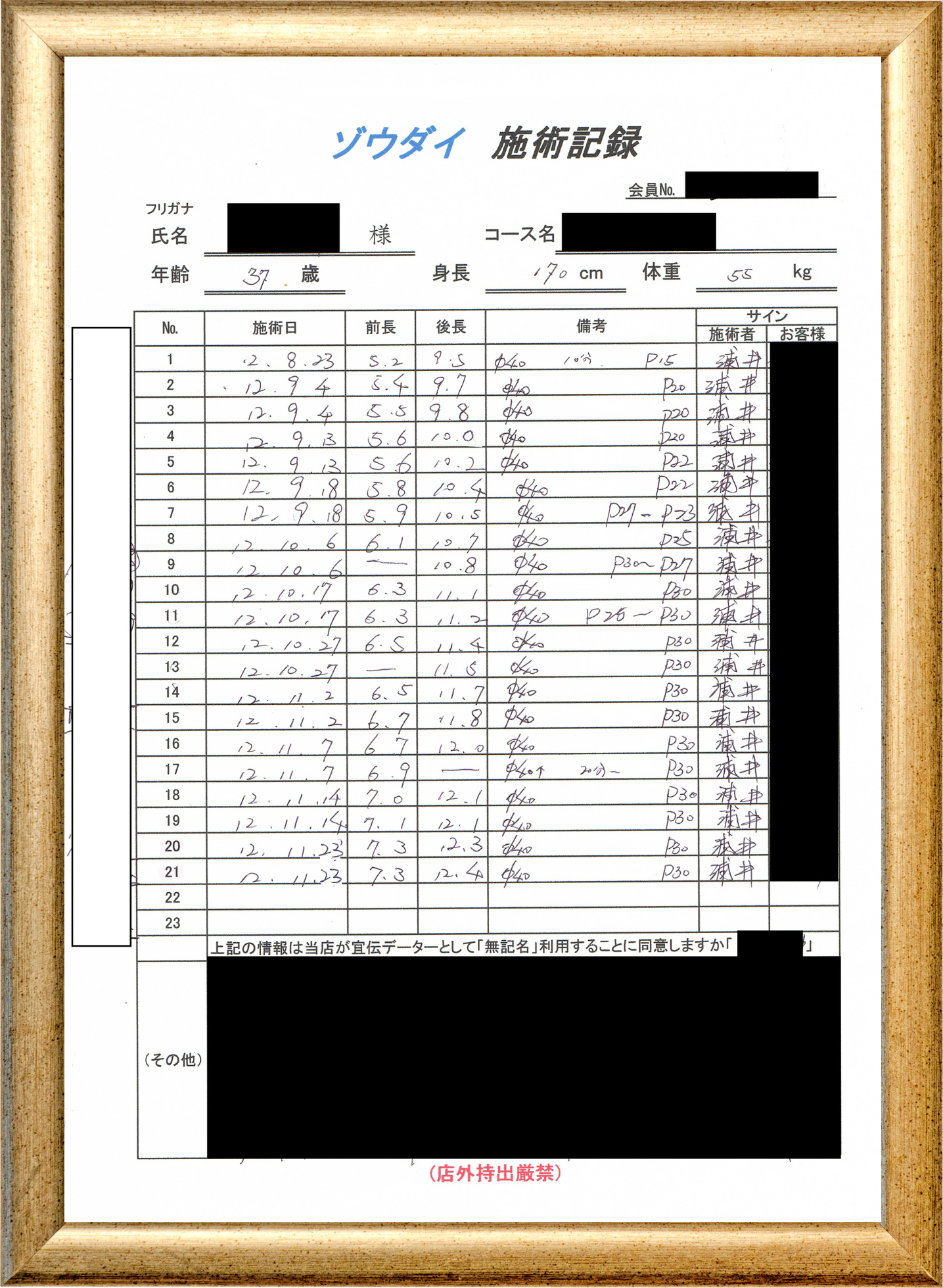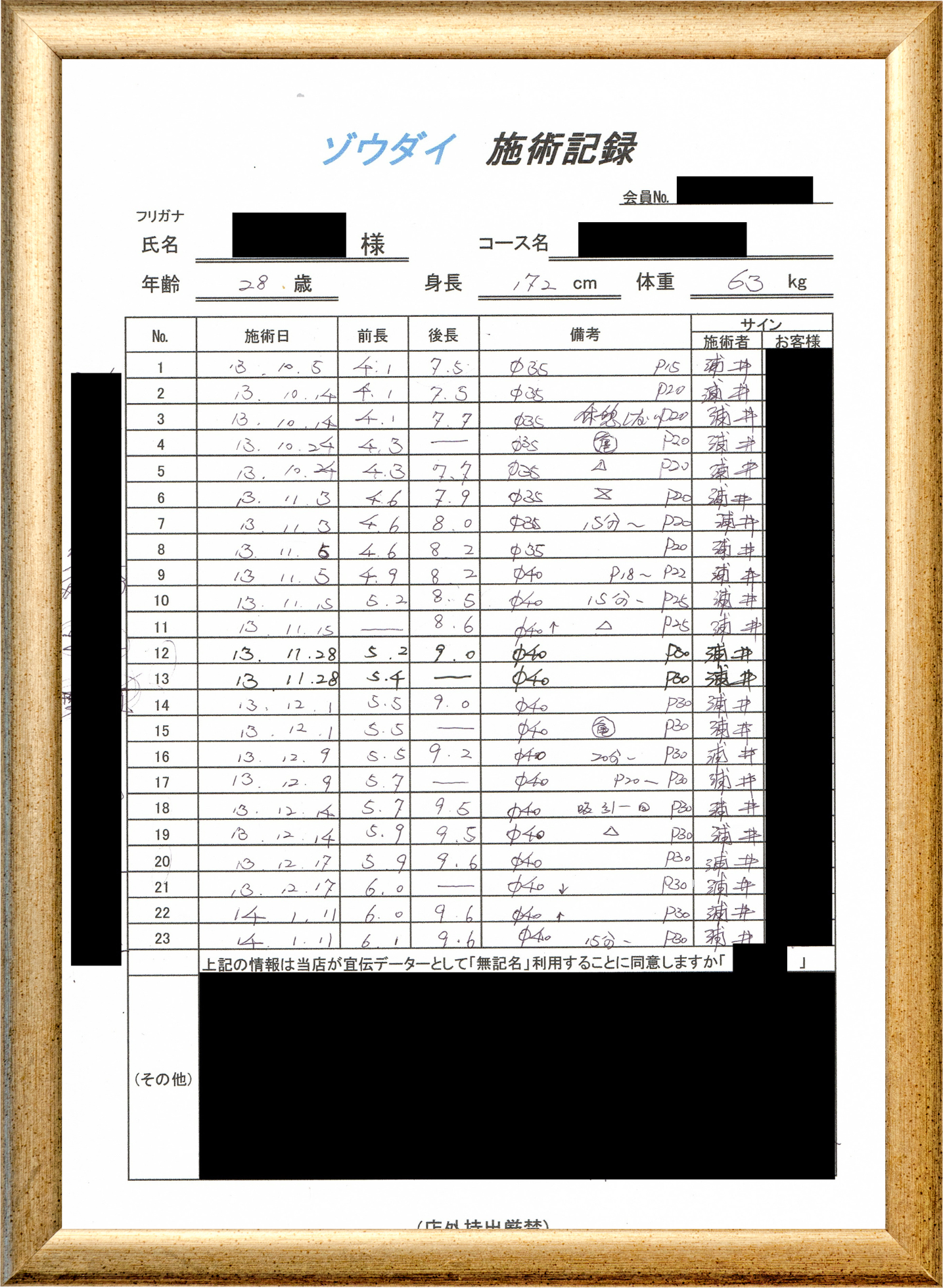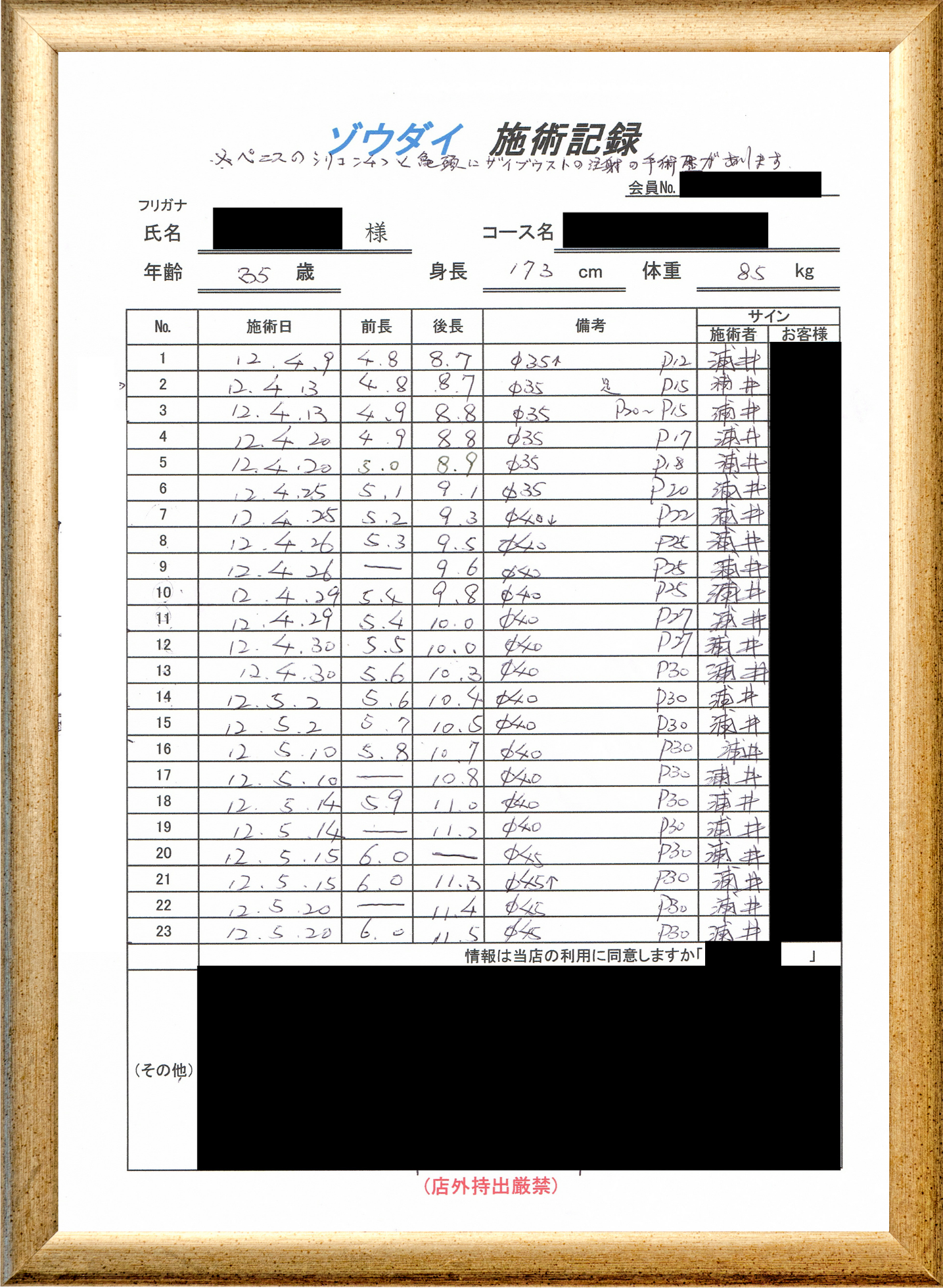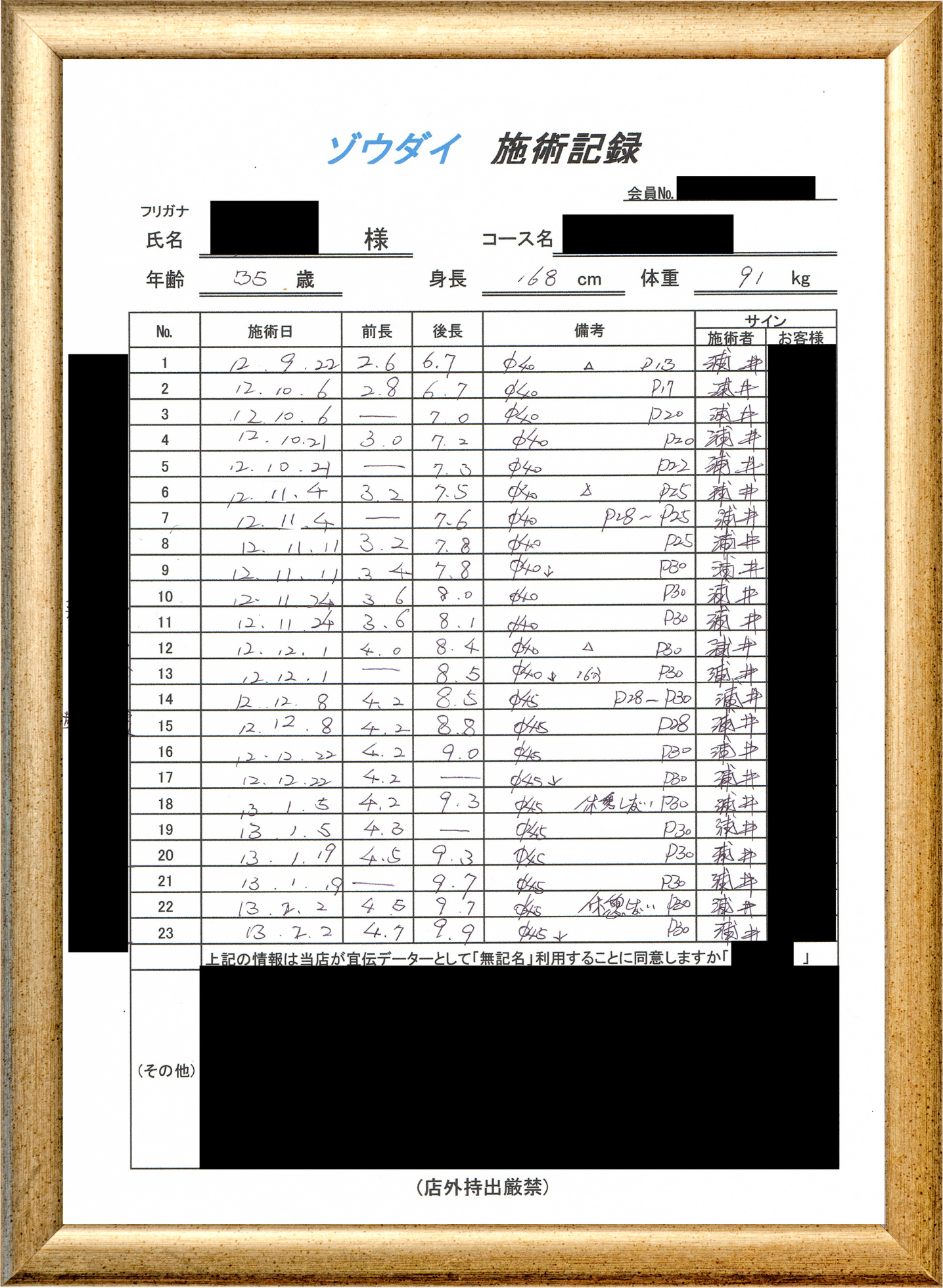 • 他の増大方法で満足されなかった方(増大手術・注射・長茎術・サプリ・増大機具等)が、当院で満足された一部のみの実例です。
