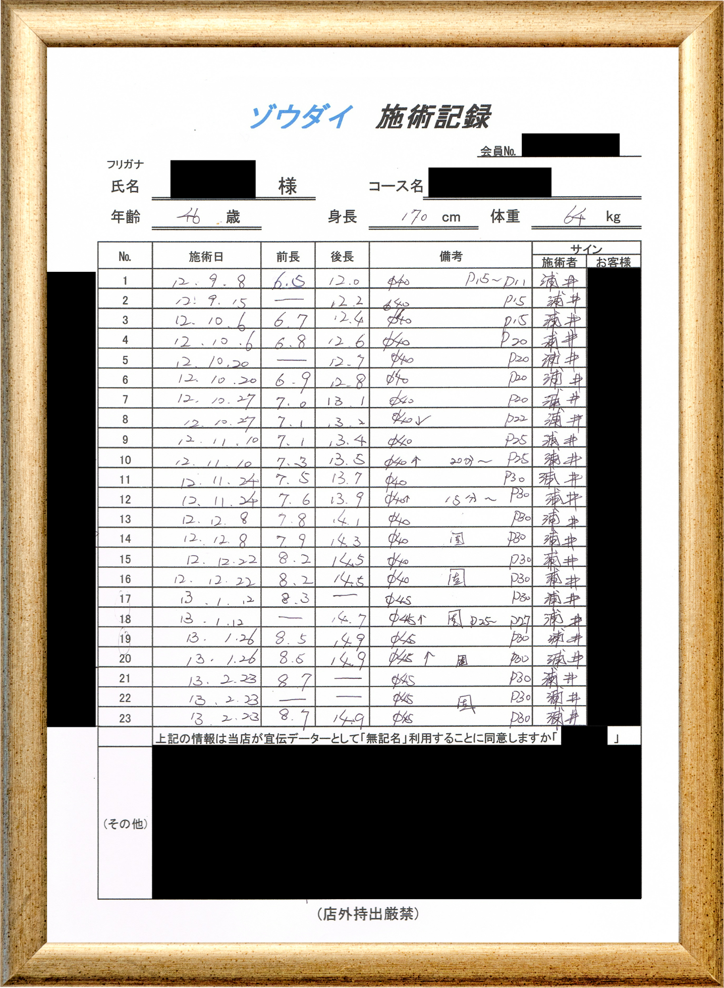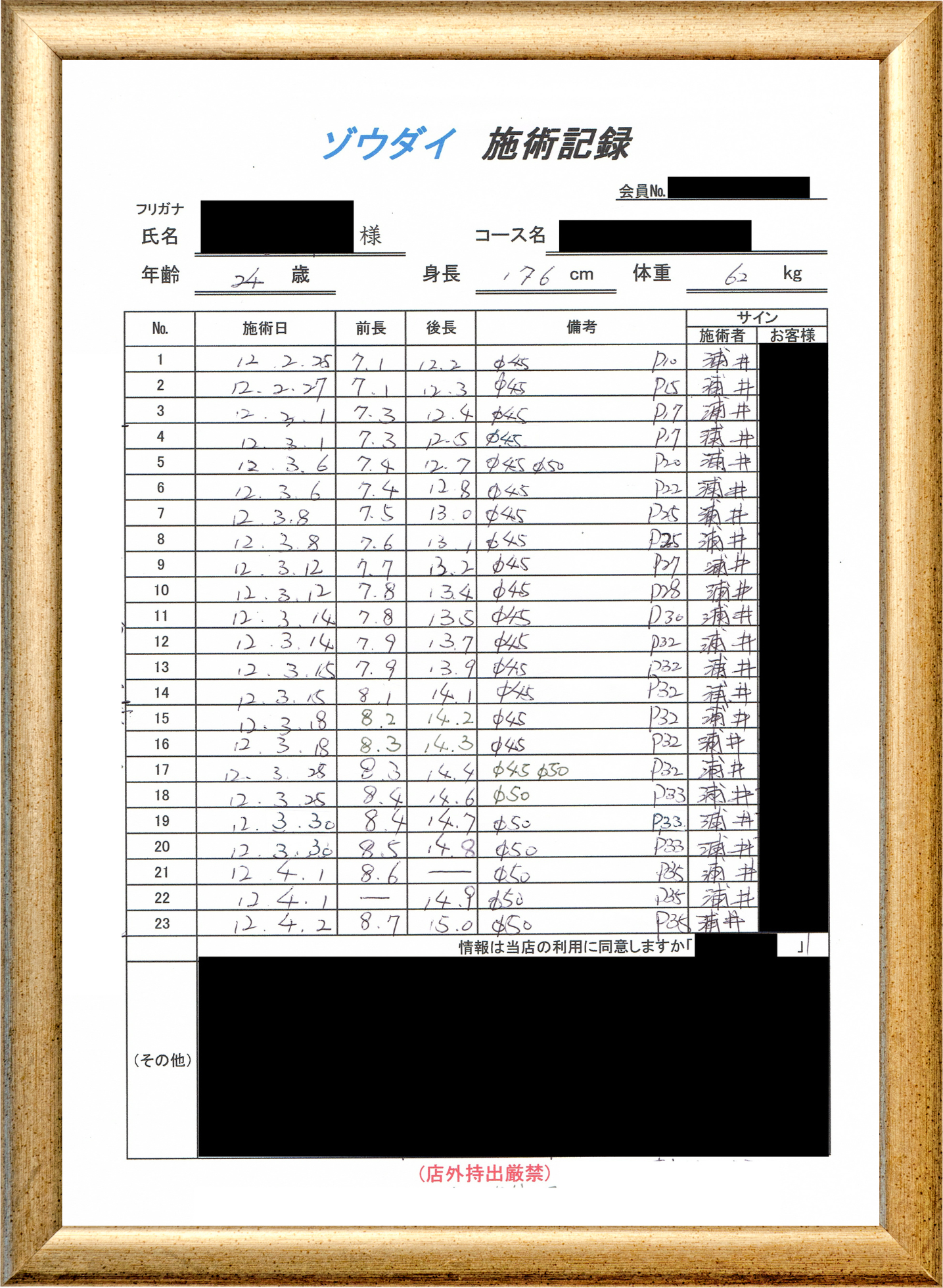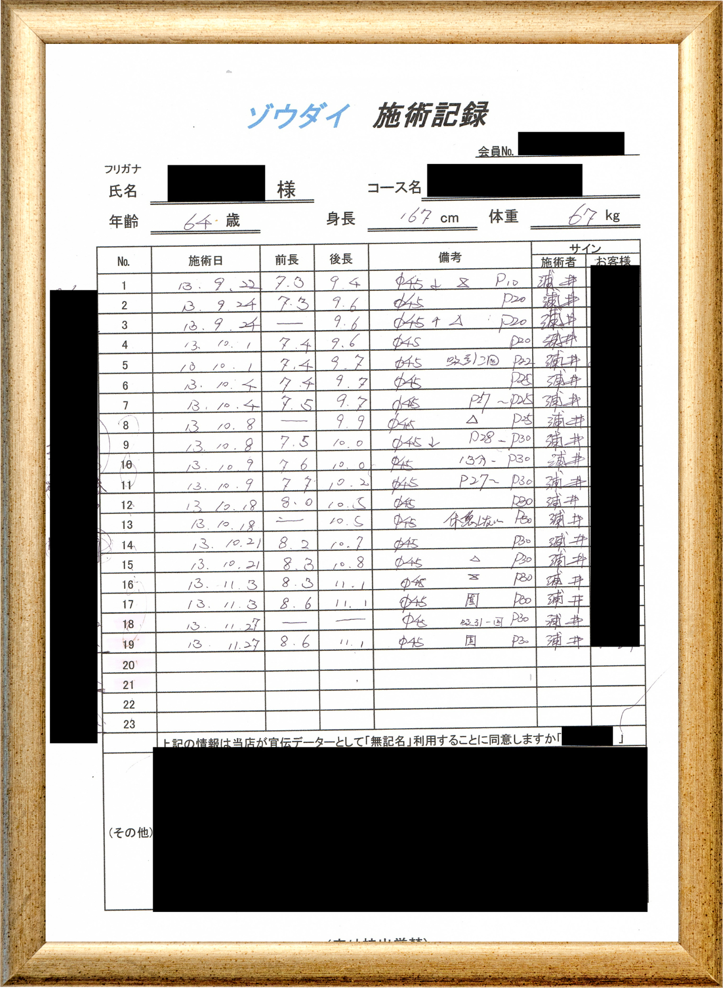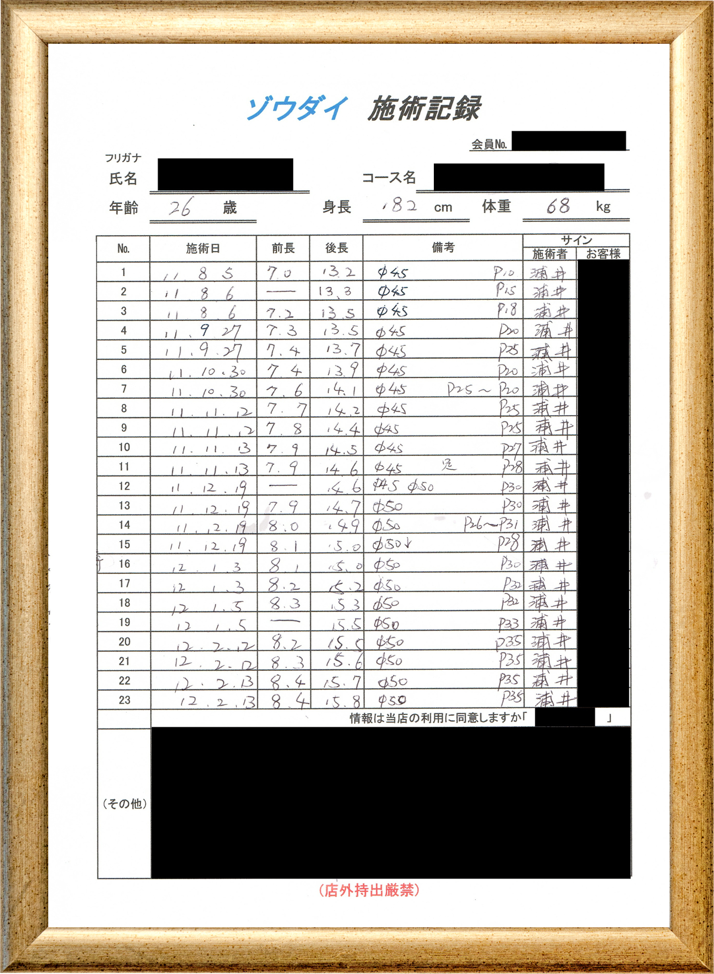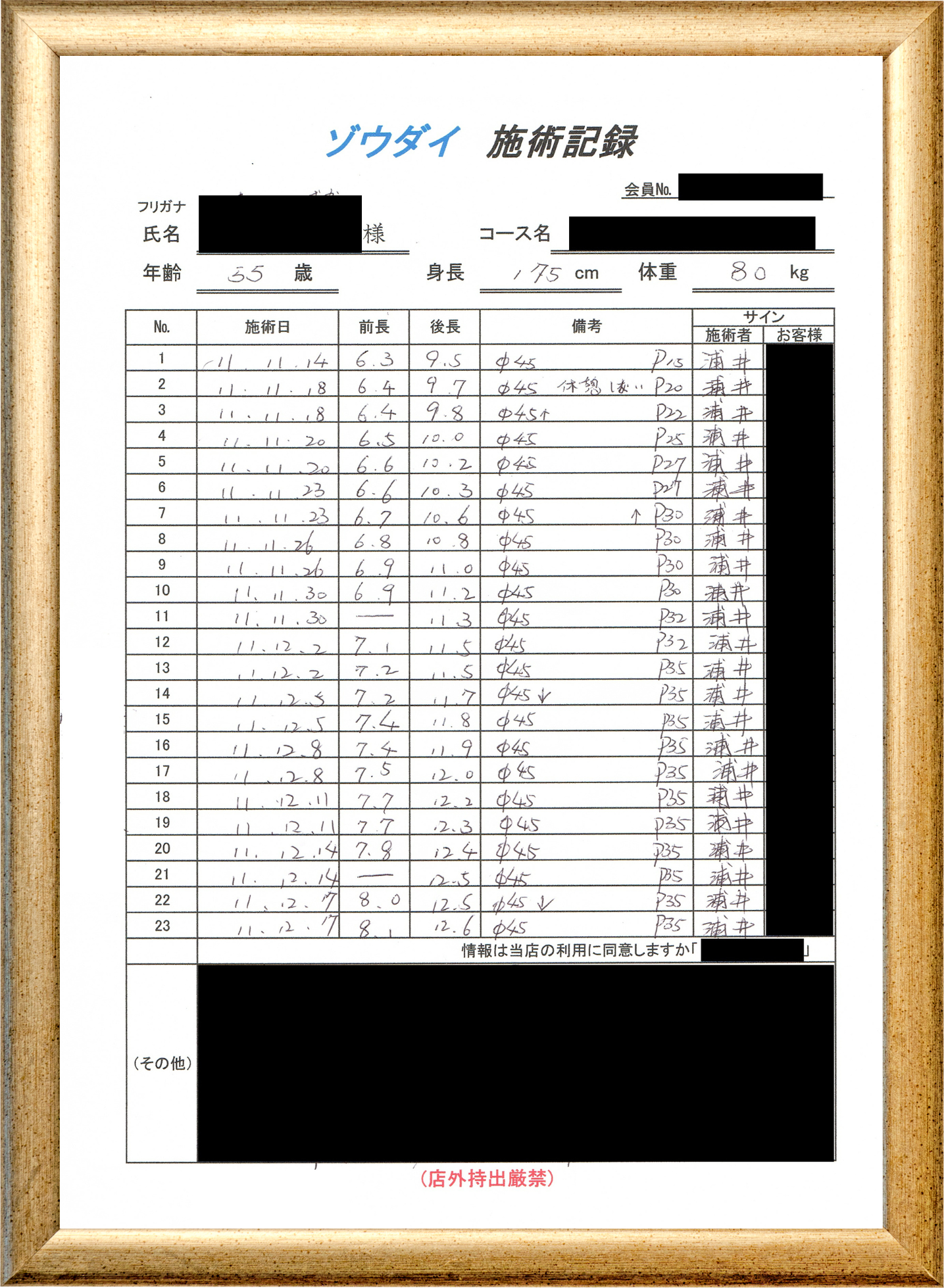 • 他の増大方法で満足されなかった方(増大手術・注射・長茎術・サプリ・増大機具等)が、当院で満足された一部のみの実例です。